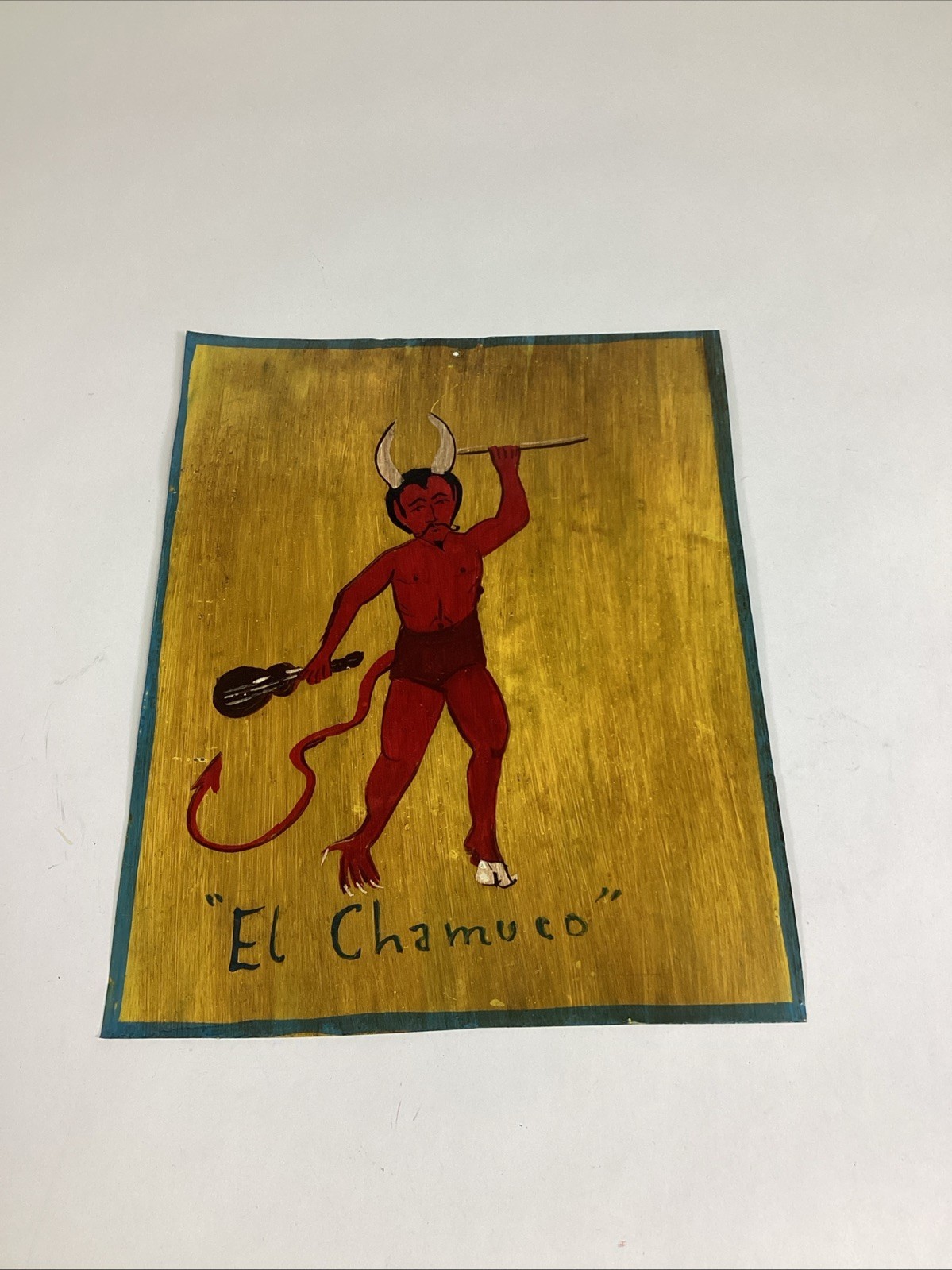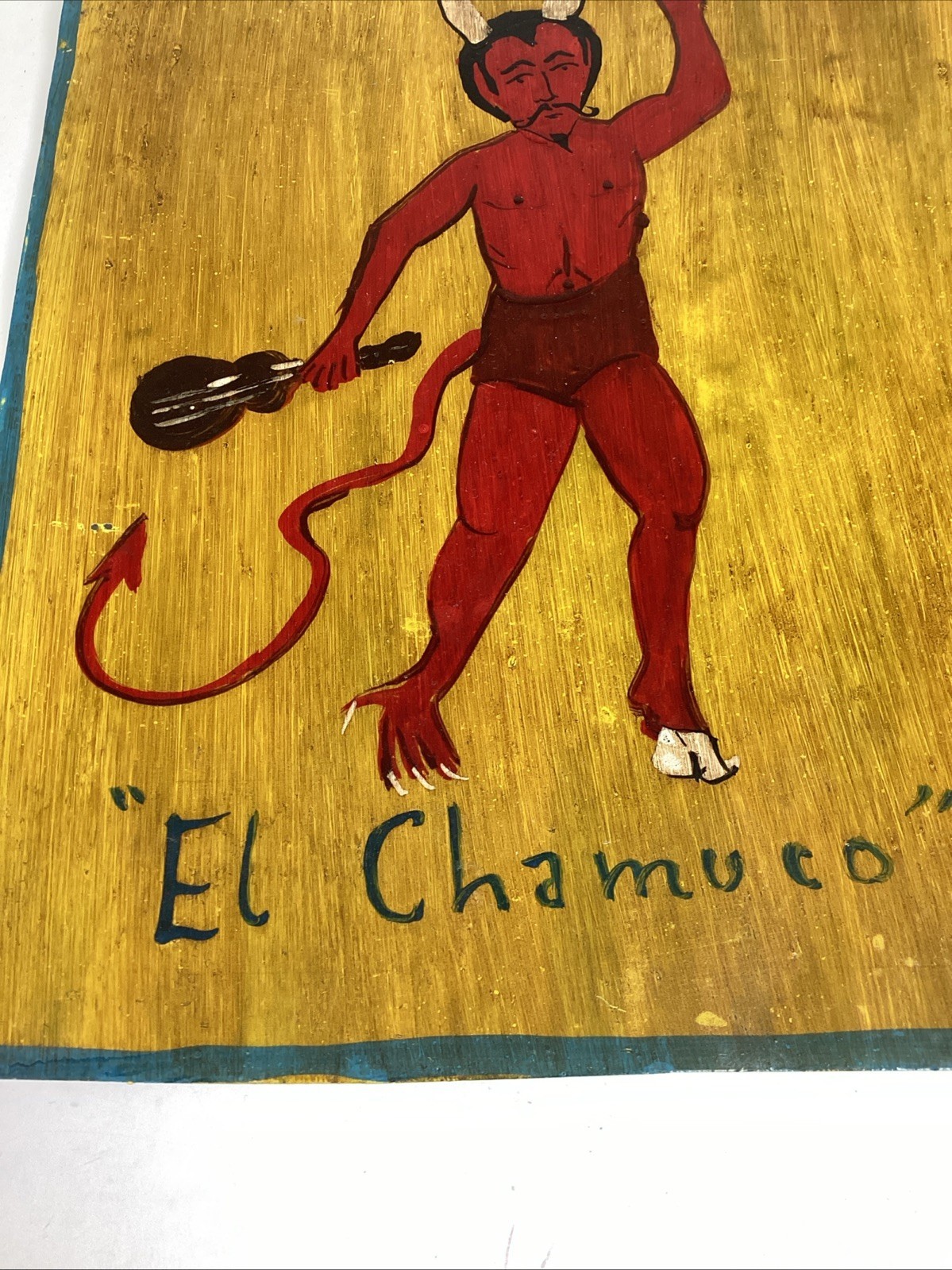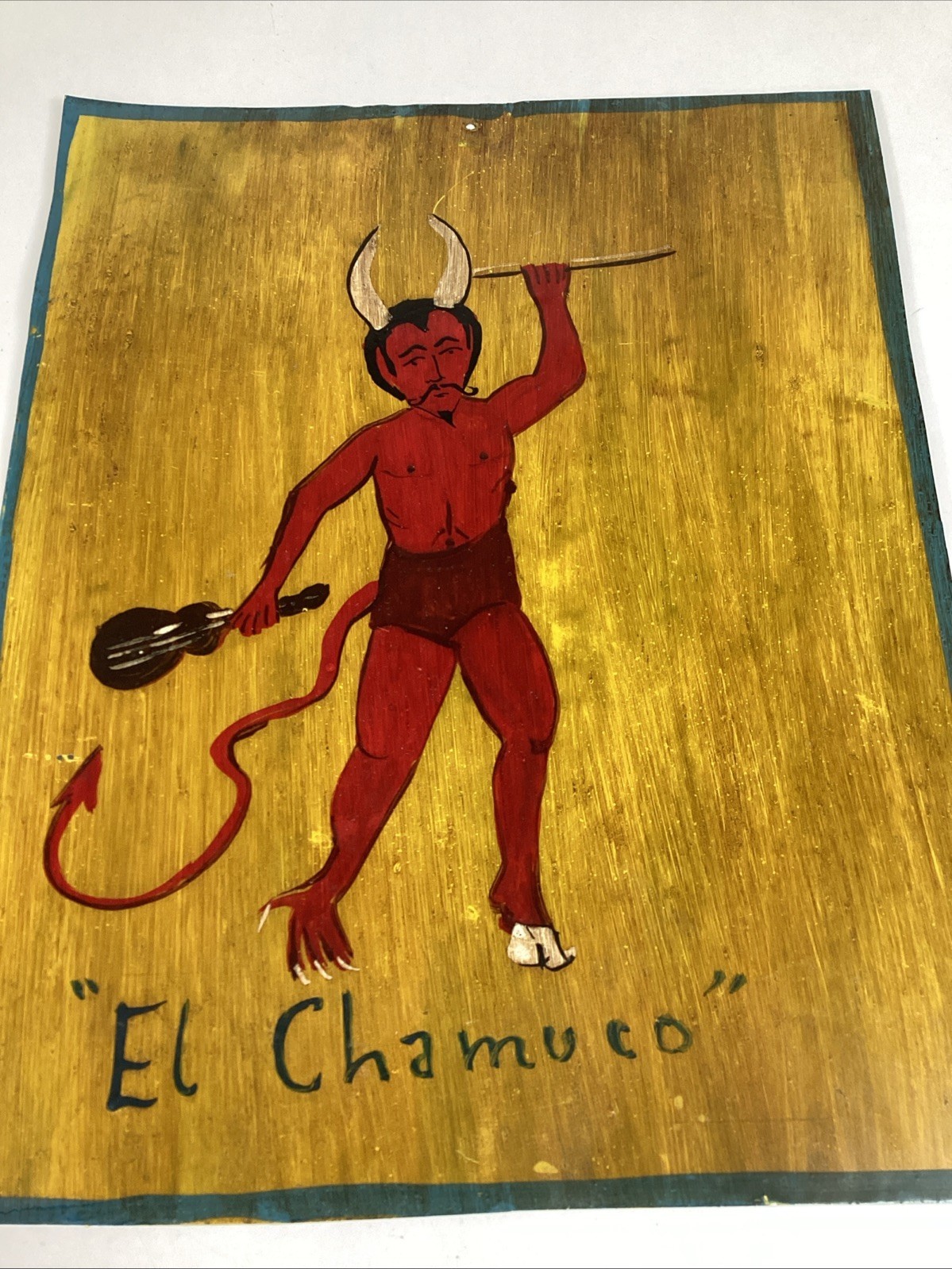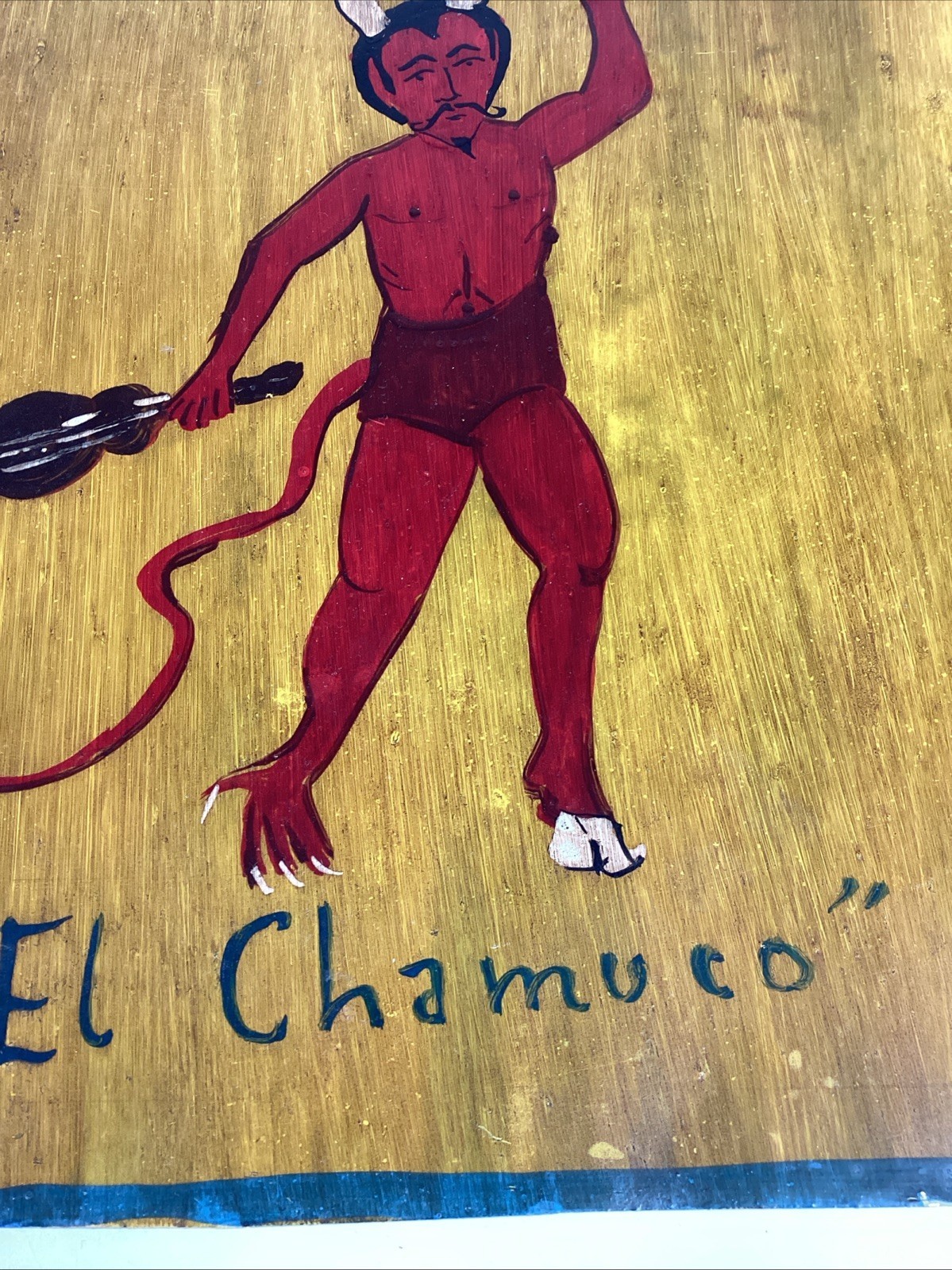 El Chamuco - The Devil Hand Painted Folklore Picture - 12x9.5?. In very good condition. It?s painted on possibly aluminum or flexible metal.