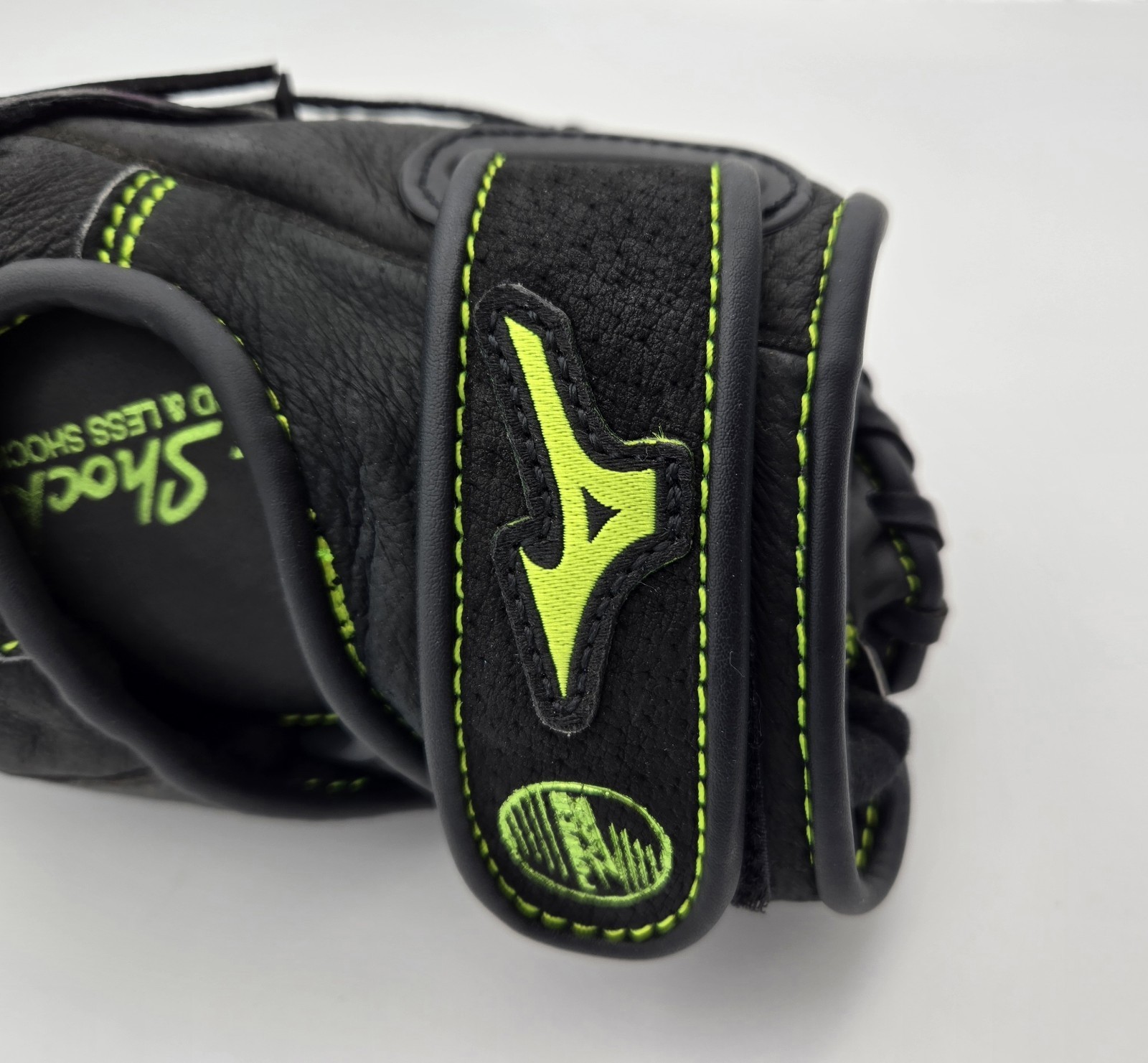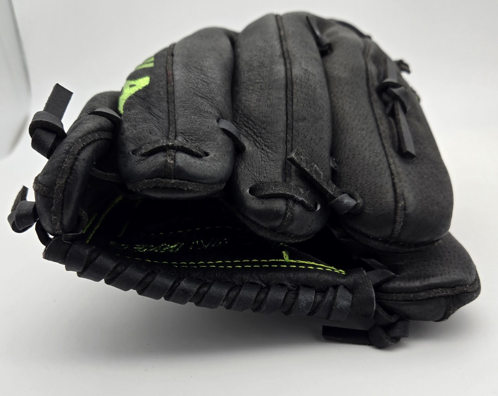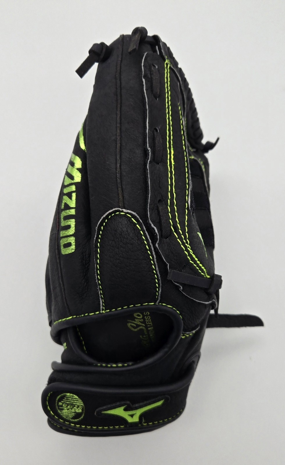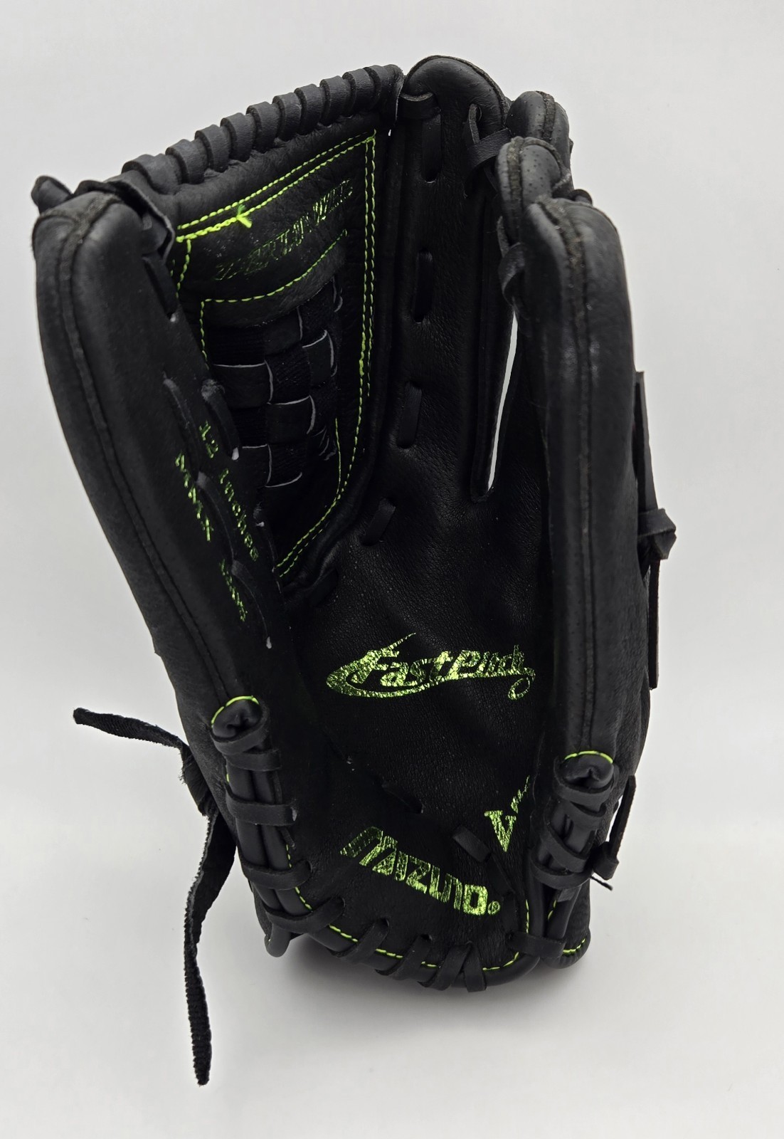 Step up your game with the Mizuno MMX 1205 12" Black Fastpitch Softball Glove Right Hand Throw with Lime Green Stitching, designed for comfort, control, and lasting playability.