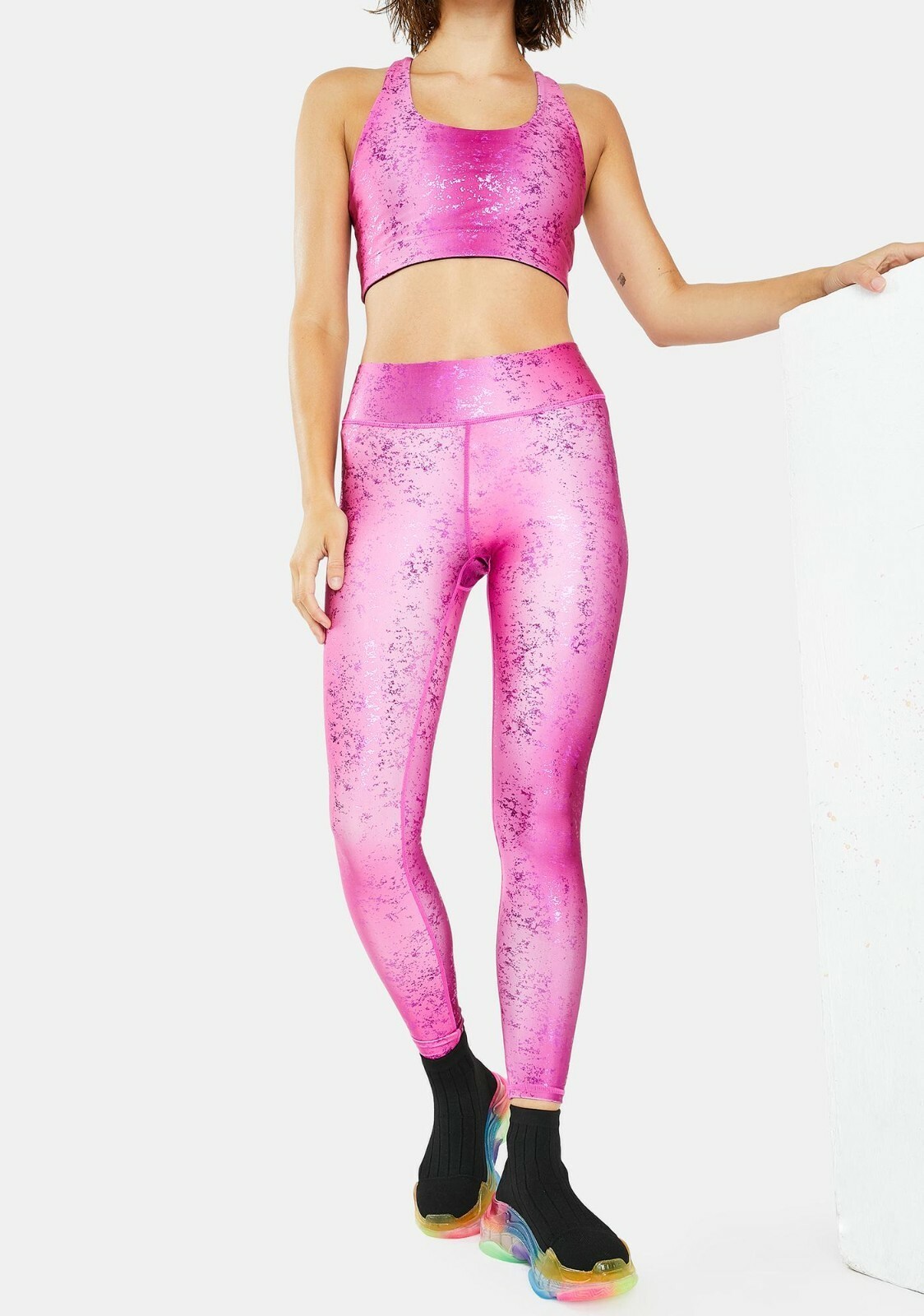 NWT Terez Balayage Foil Leggings and Sports Bra SET Raspberry Pink XS
