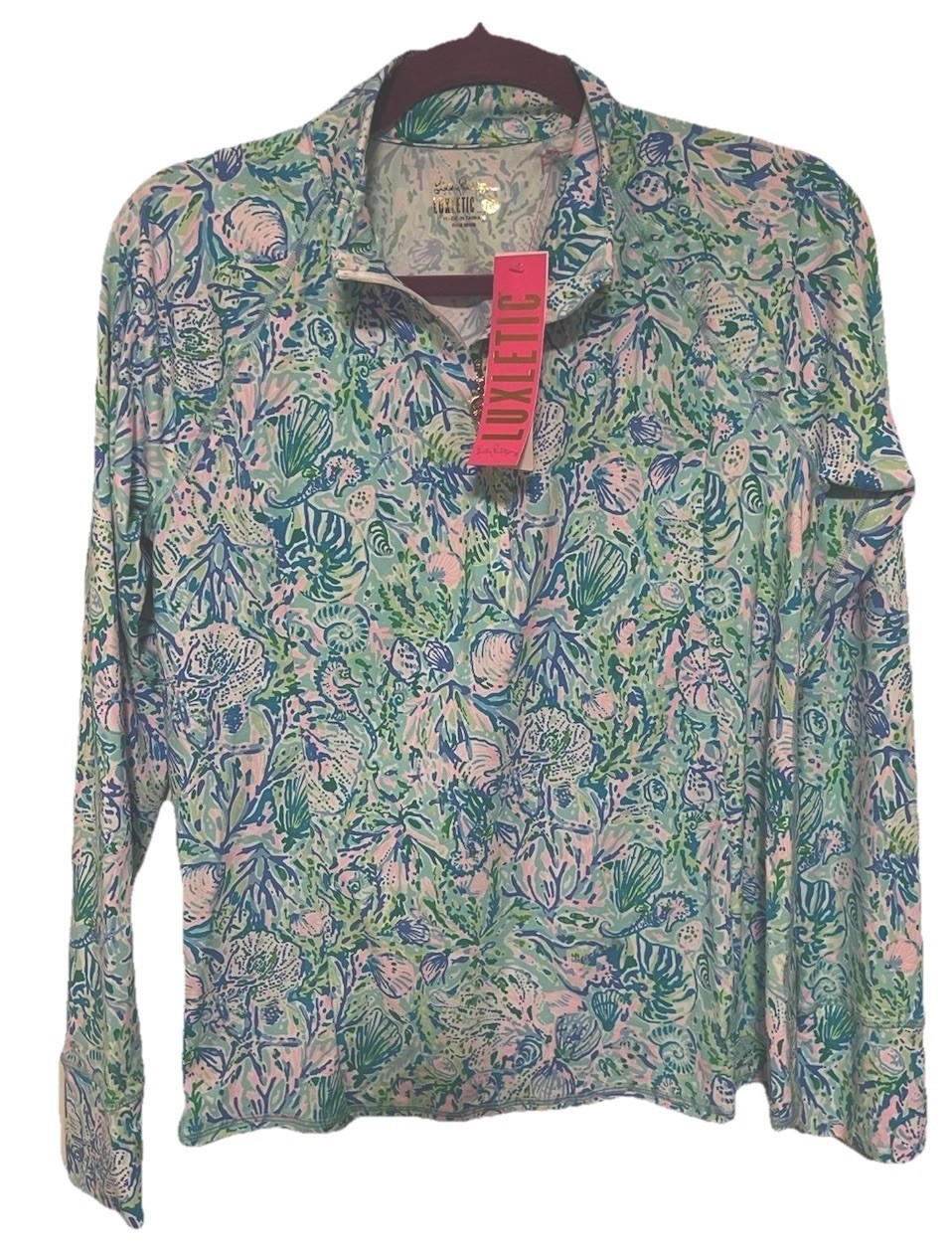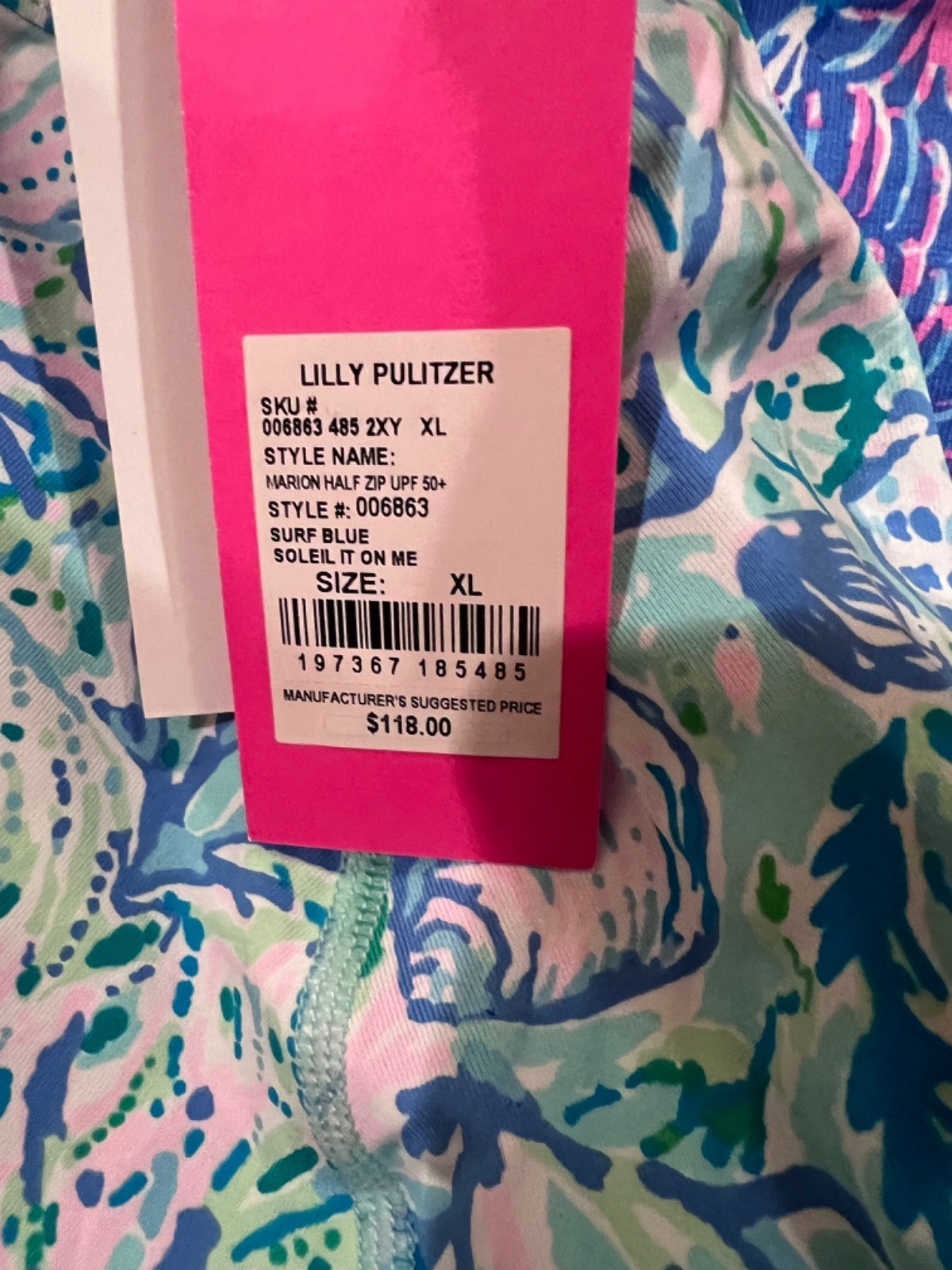Lilly Pulitzer Luxletic Marion UPF 50 Surf Blue Soleil It On Me Top XL NWT