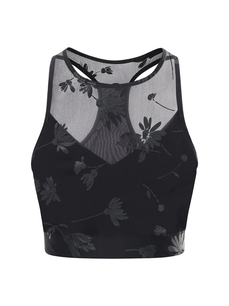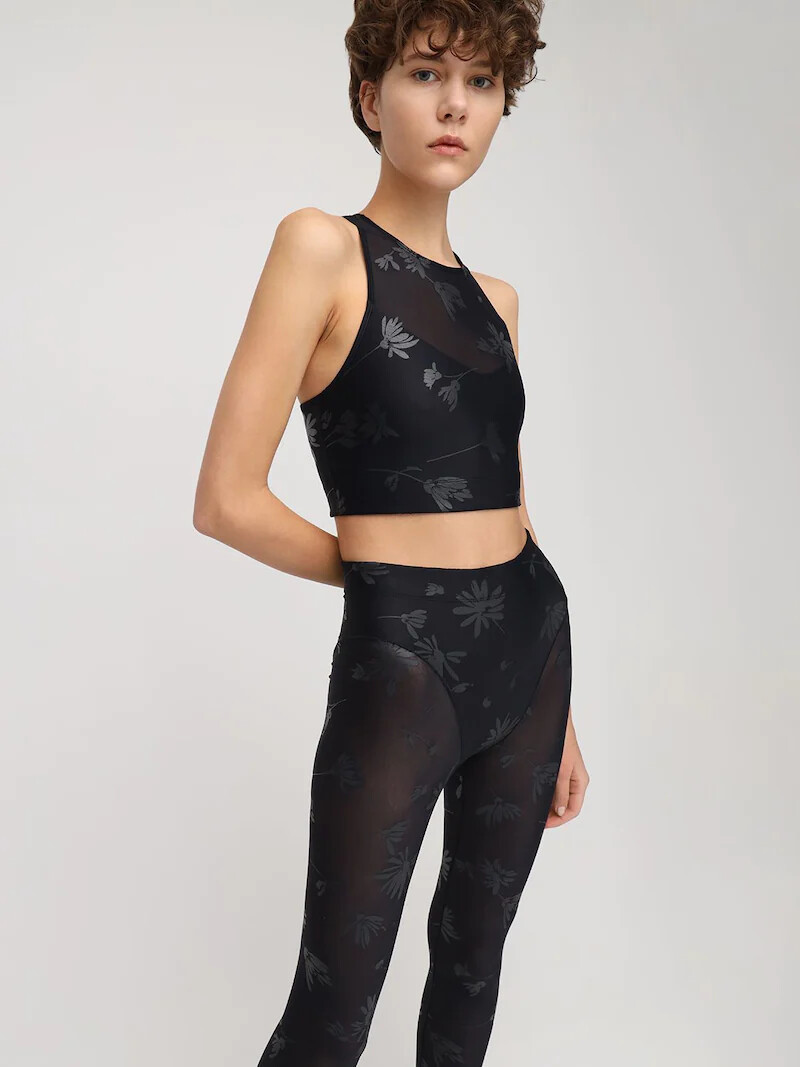 Adam Selman Sport Carbon38 Black Daisy Sheer Top Sports Bra Crop Top NWT sz XXS