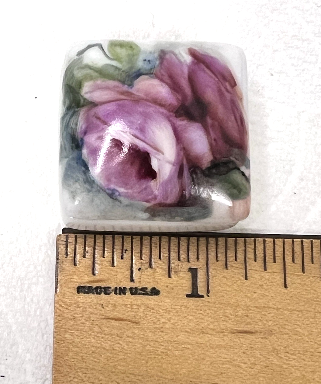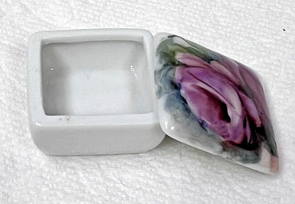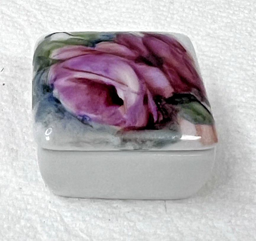 Miniature Hand Painted Pink Rose Trinket box 1 1/8 Inch Sq Beautiful