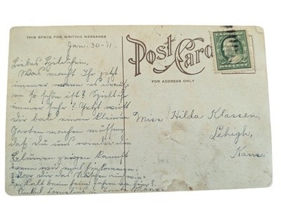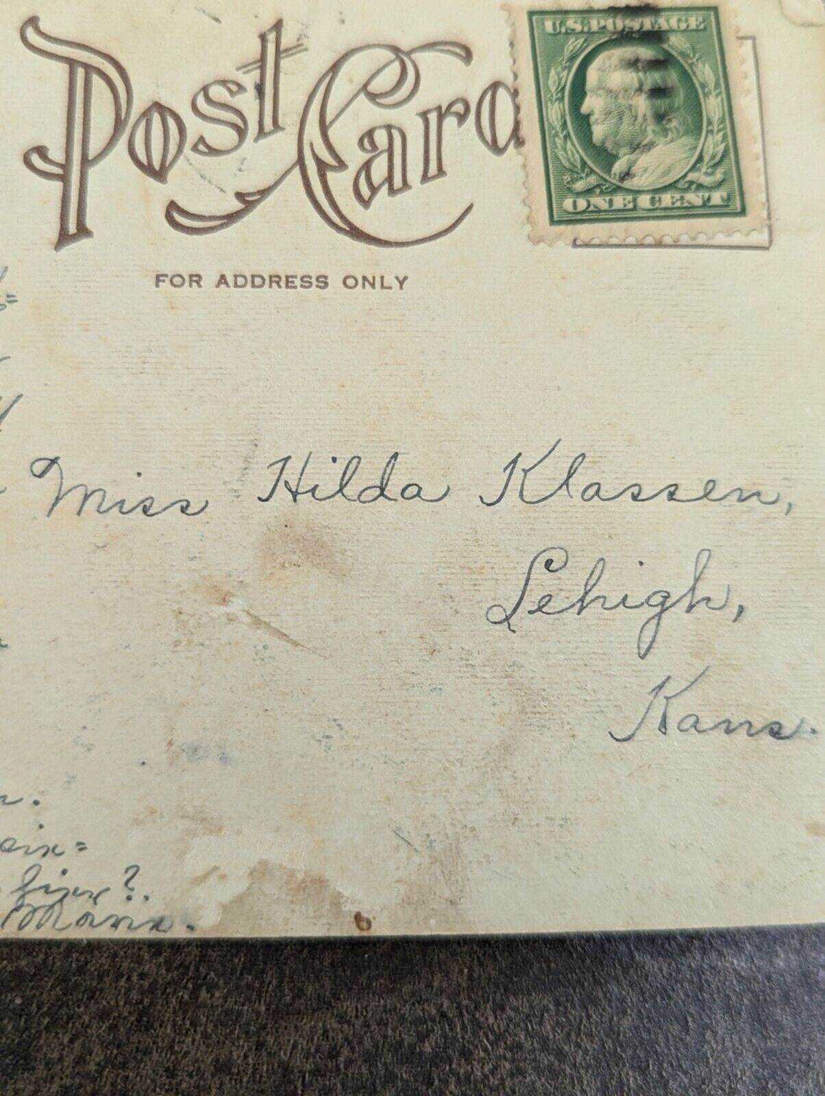 Get Well Postcard Purple Flower Antique 1911 Hilda Klassen Lehigh Kansas 1c Stam