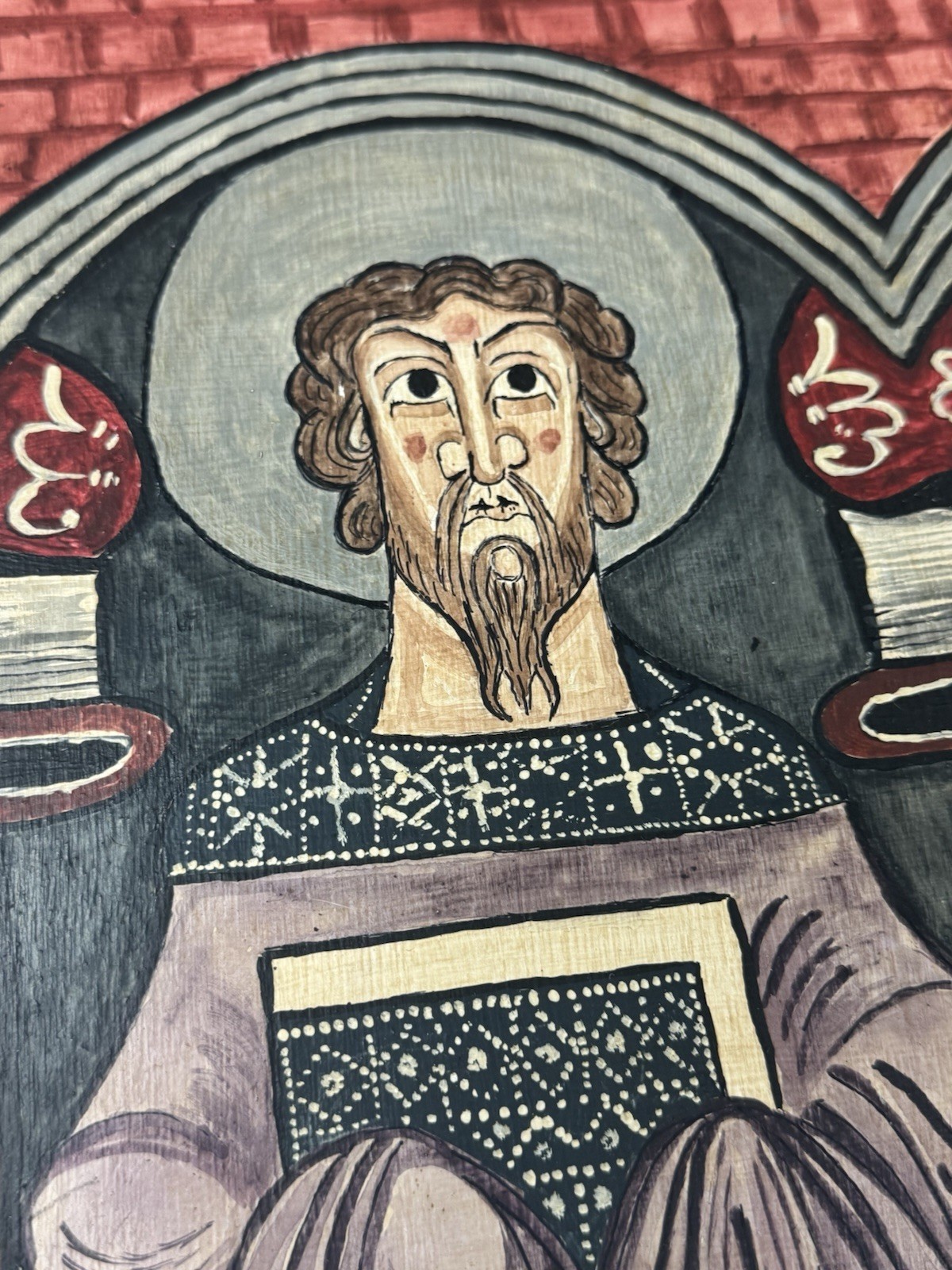 Romanesque Painting Original Fresco St. Bartholomew & Mary Holy Grail Art Icon