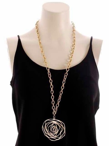 Simply elegant large-scale or statement stylized vintage rose pendant with textured golden link chain necklace. The vintage rose pendant measures 2 7/8" by 2 1/2", with a 15 1/2" chain. Excellent condition. A fun way to add flair to a plain top.