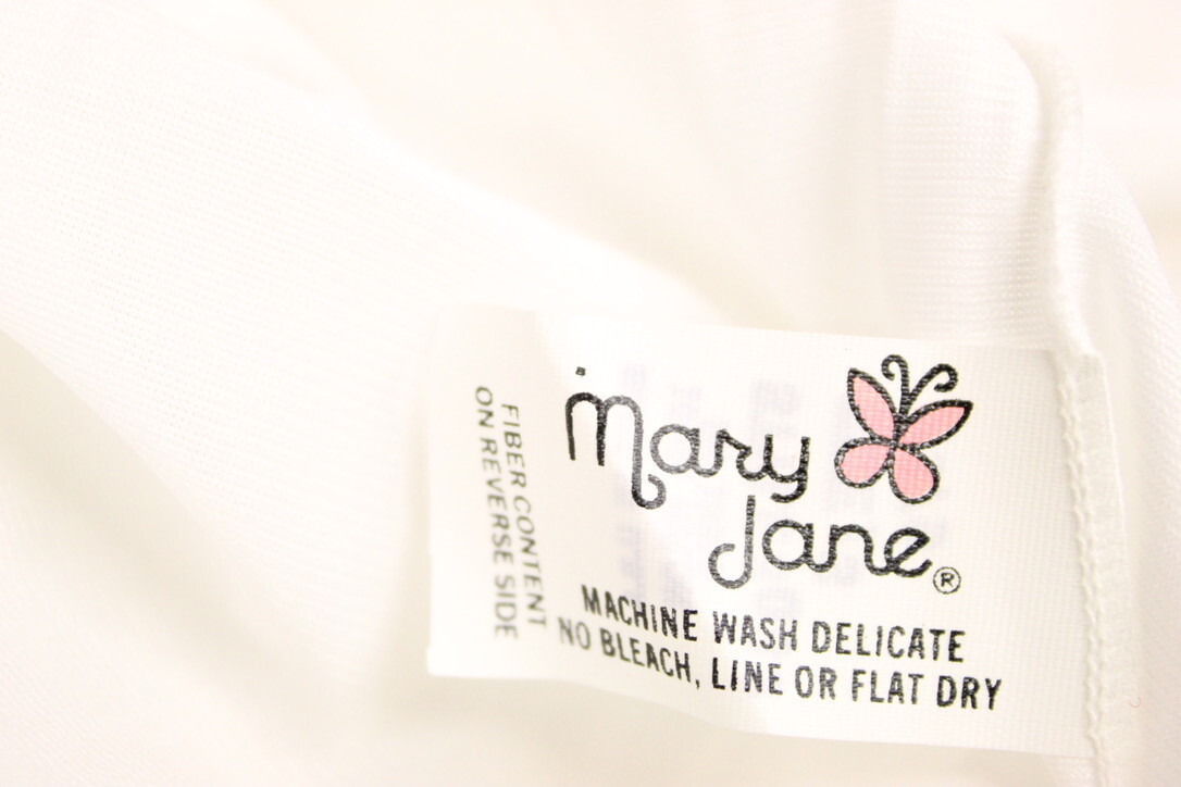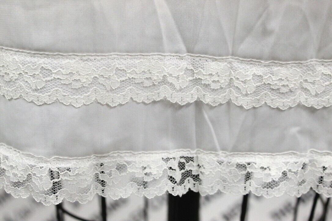 Vintage white Antron III nylon half slip from Mary Jane with two tiers of scalloped lace around the hem.
