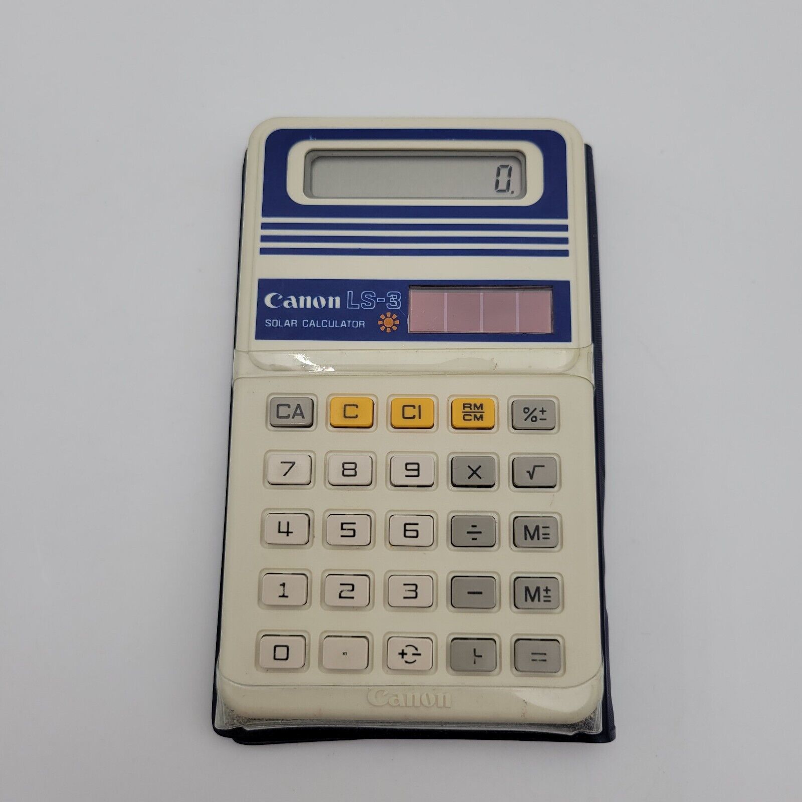 Canon LS-3 Solar Vintage Calculator Case Electronic Handheld Tested Working