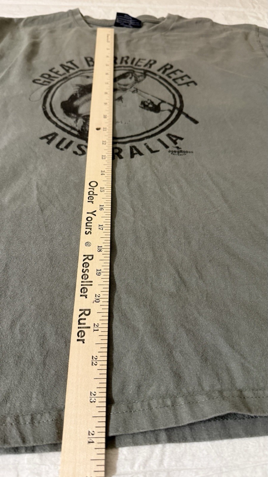 The product is a men's large green T-shirt featuring the iconic Great Barrier Reef design from Australia. Made by the brand Bobby OZ, this regular fit tee is perfect for showcasing your love for nature and one of the world's most famous landmarks. The vibrant green color adds a pop of color to your wardrobe, making it a stylish and comfortable choice for everyday wear.