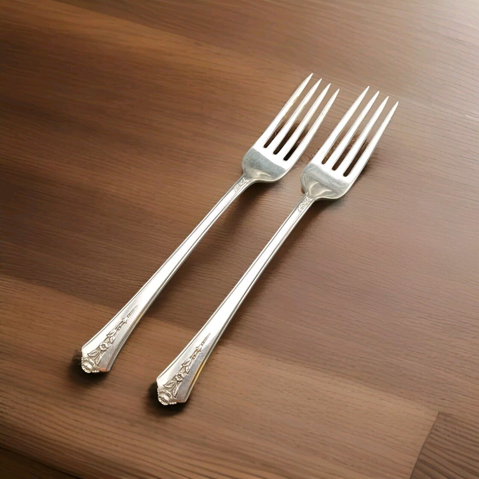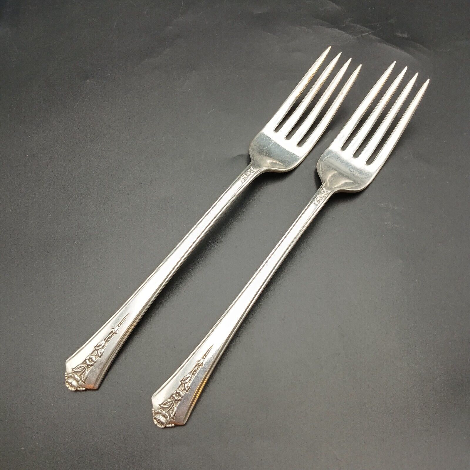 Set 2 Holmes and Edwards SPRING GARDEN Salad FORK Flatware Vtg