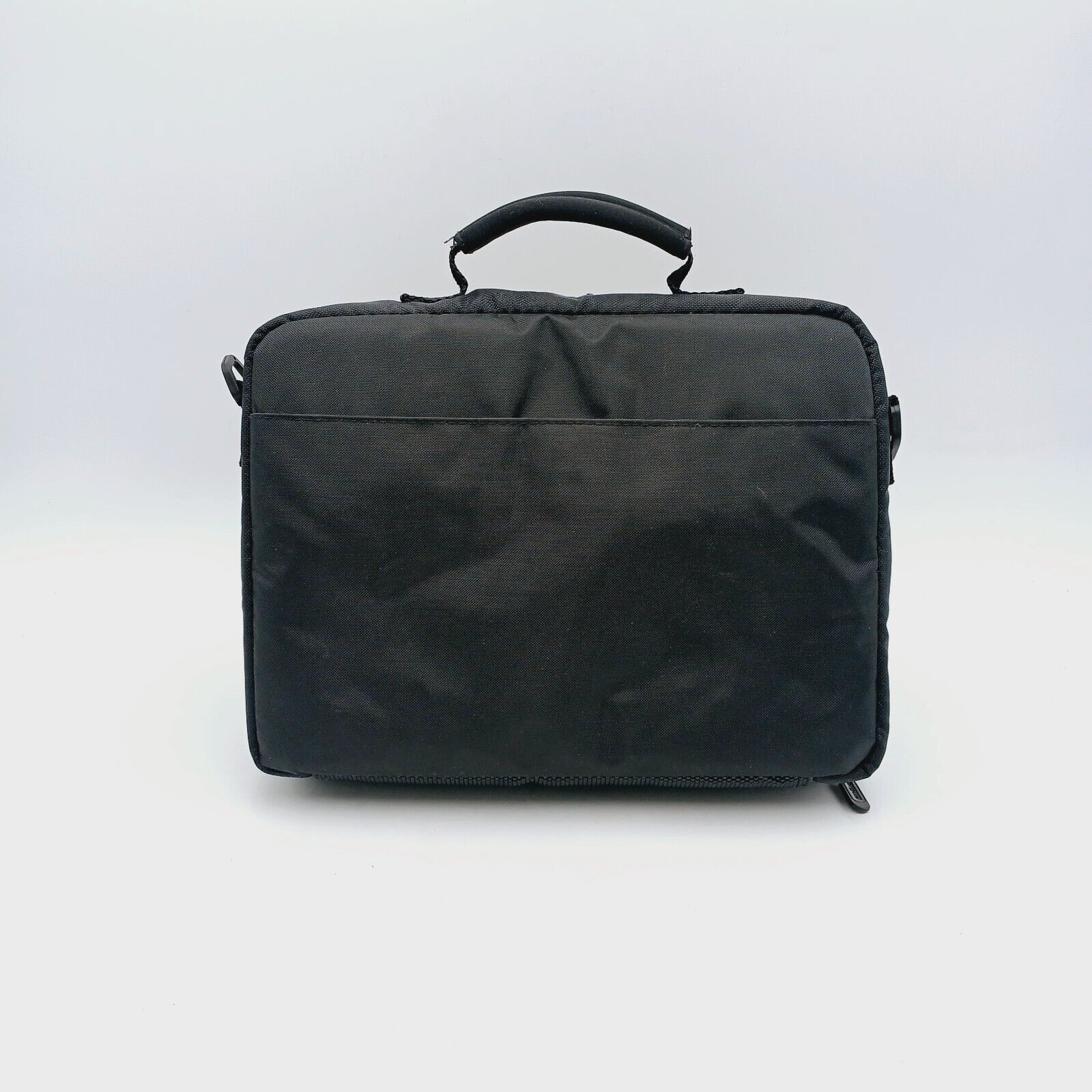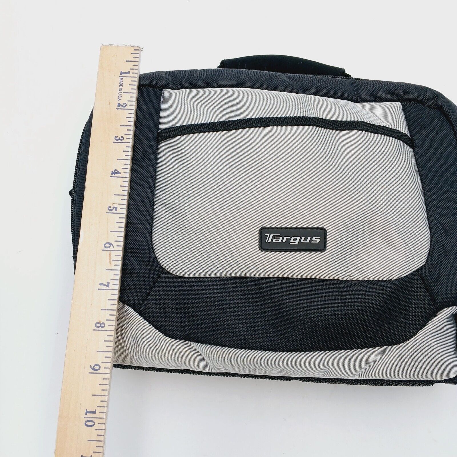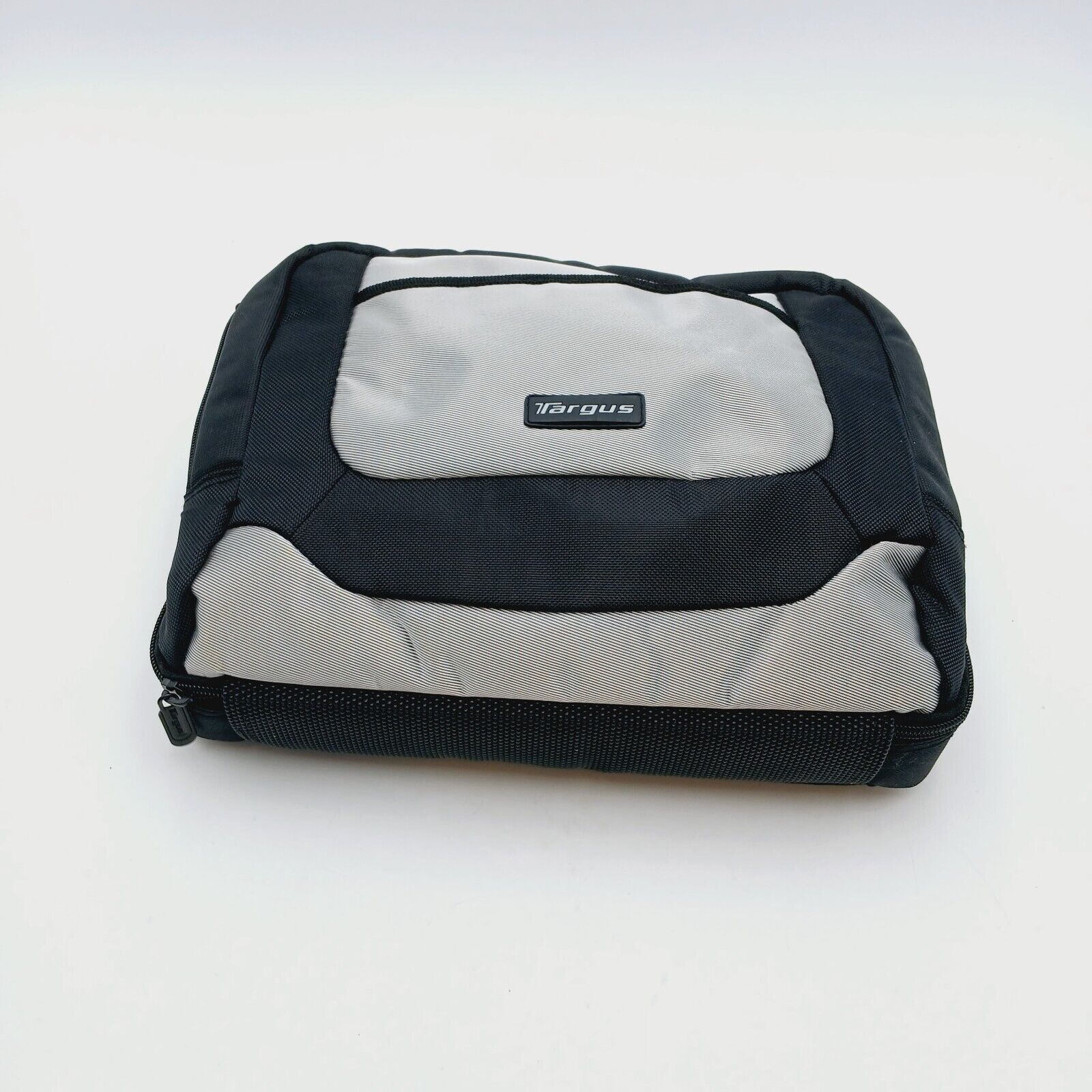 The "Audio box Portable DVD Targus Case" is a black/silver case specifically designed to fit up to a 10-inch DVD player. The case is made of nylon material, ensuring durability and protection for the DVD player during transport or storage. The inclusion of the Targus brand suggests a reputable manufacturer known for producing quality electronic accessories. This case is ideal for safely storing and carrying a portable DVD player, making it a convenient accessory for on-the-go entertainment.