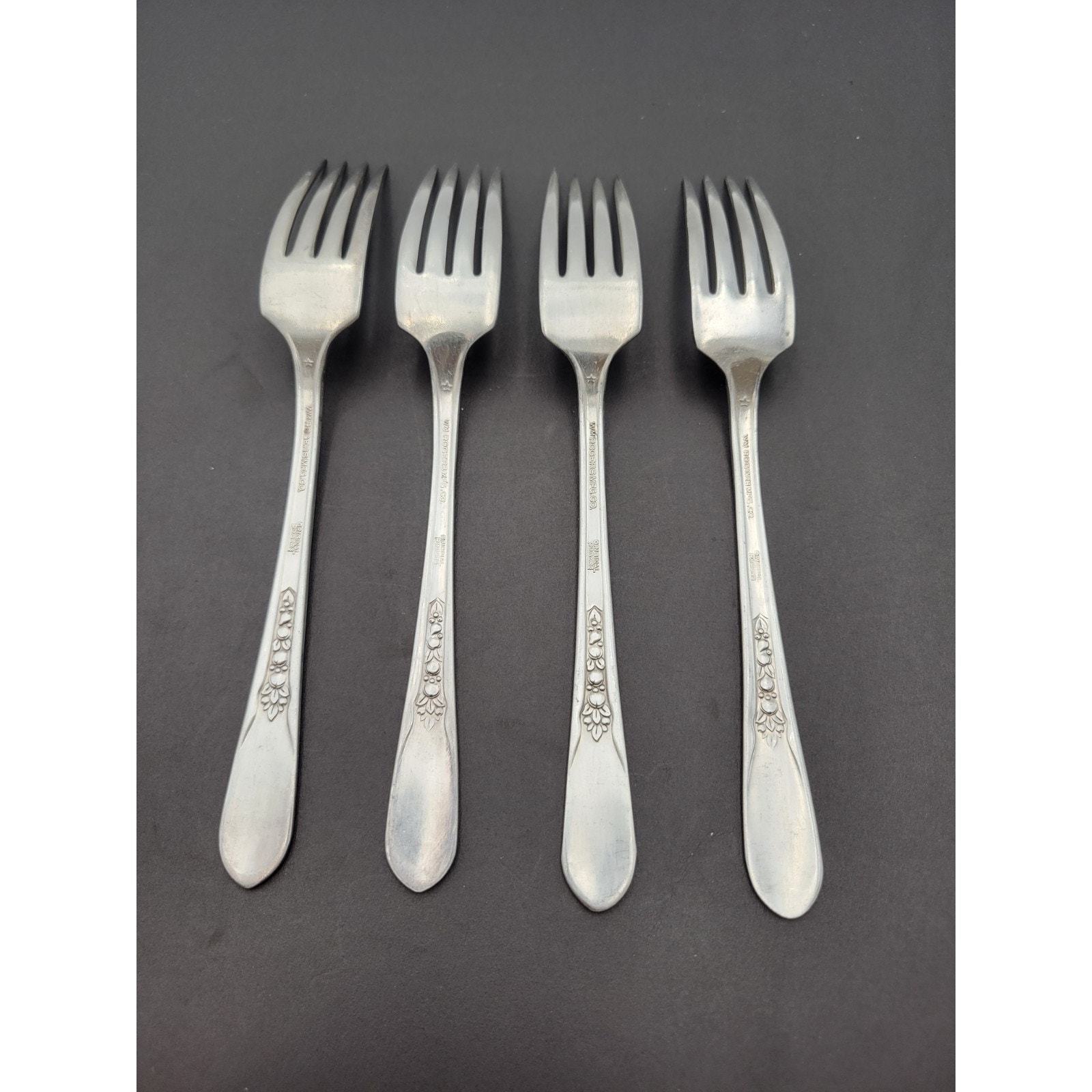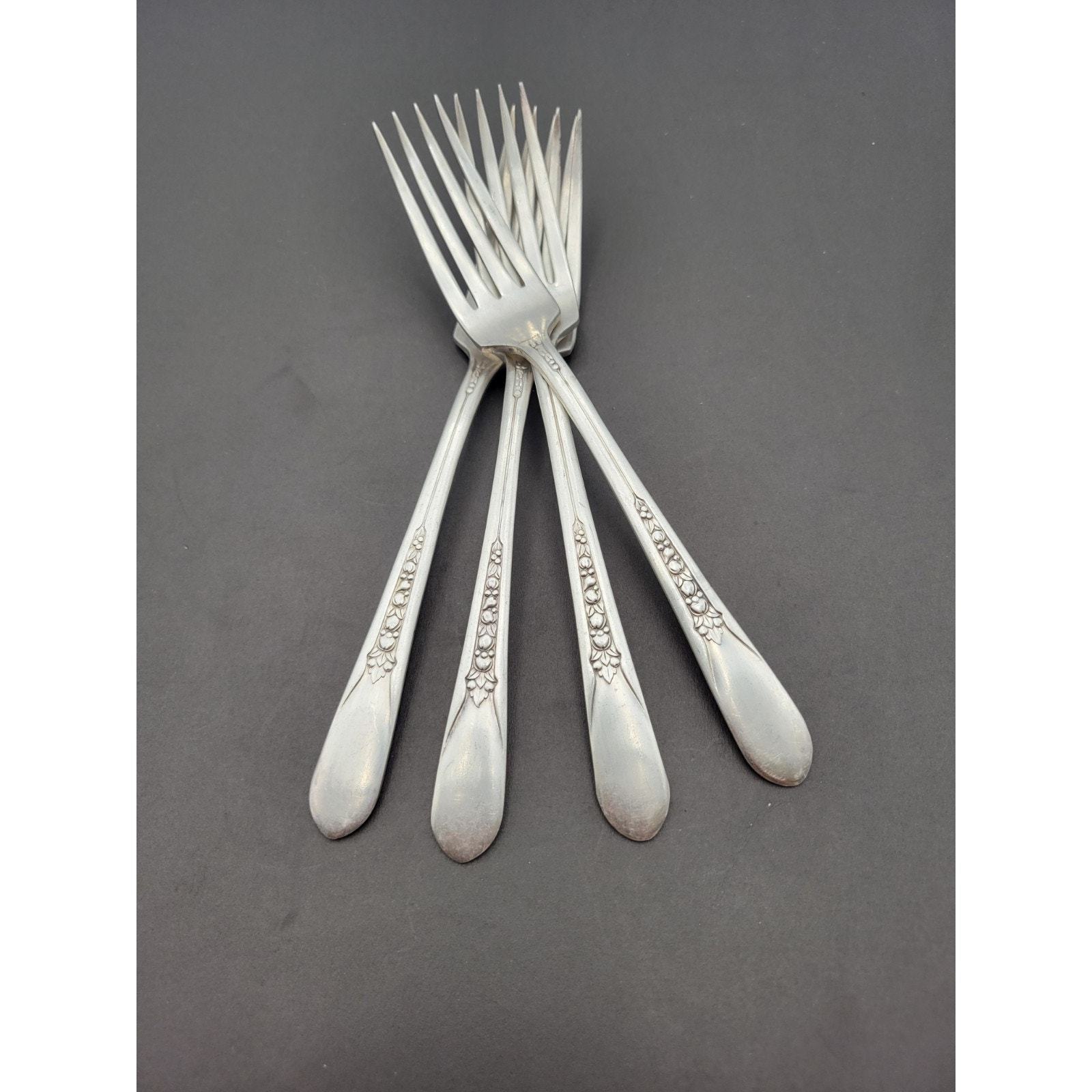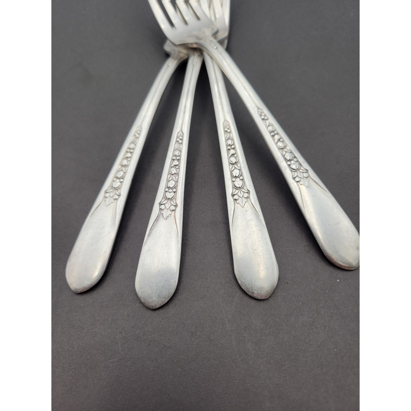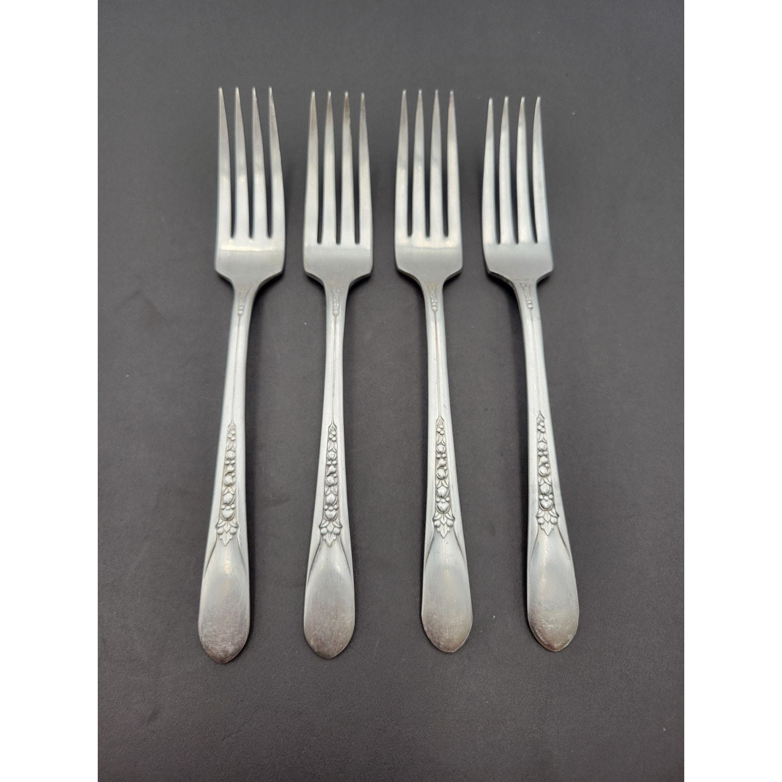 WM Rogers Mfg Set 4 Dinner Fork PRISCILLA LADY ANN Silverplate Flatware Vtg D