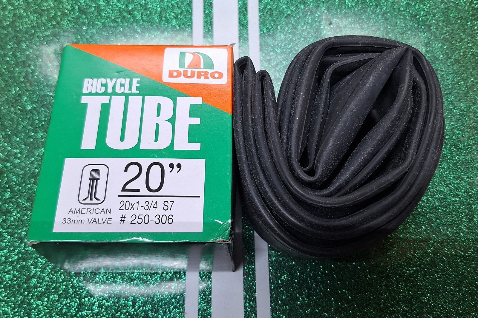 The product is a Duro inner tube designed to fit a 20 x 1 3/4" banana seat BMX muscle bike, specifically the Schwinn Stingray model. This high-quality inner tube is a perfect replacement part for collectors or enthusiasts looking to restore or customize their vintage bicycles. Its durable construction and precise fit ensure a smooth and safe riding experience for users.