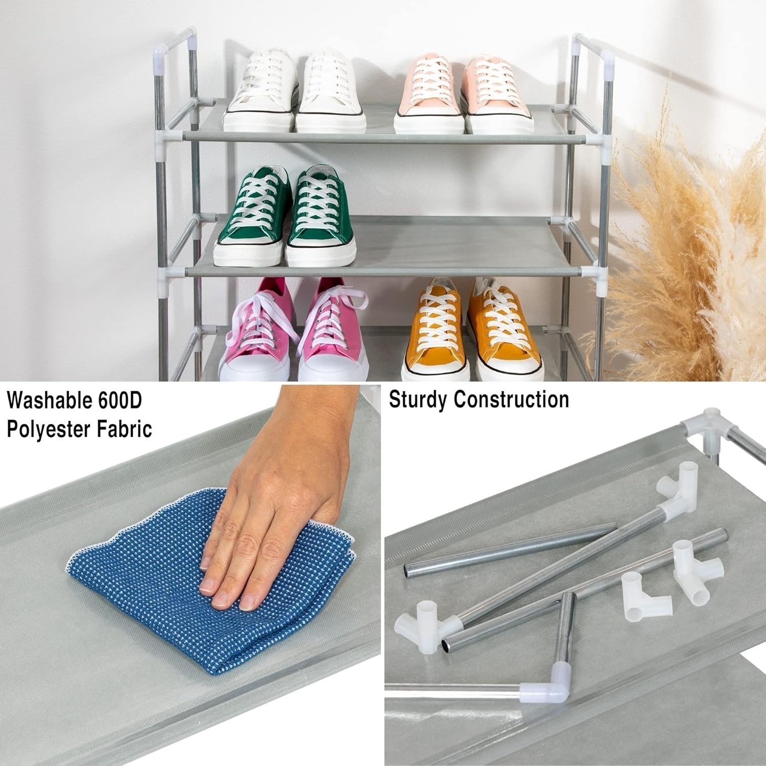 This product is a 2 Pack of Shoe Racks. 2 shoe racks per order. When one shoe rack is good, two shoe racks are better. Great value for your dollar! Easy to assemble. Made from high quality materials. Sturdy construction. Made from hand washable materials. Each shoe rack has 5 shelves. Each shoe rack will hold 12 plus pairs of shoes, 24 plus pairs of shoes being stored. High capacity, Multi-functional storage, can be used to store many types of items.