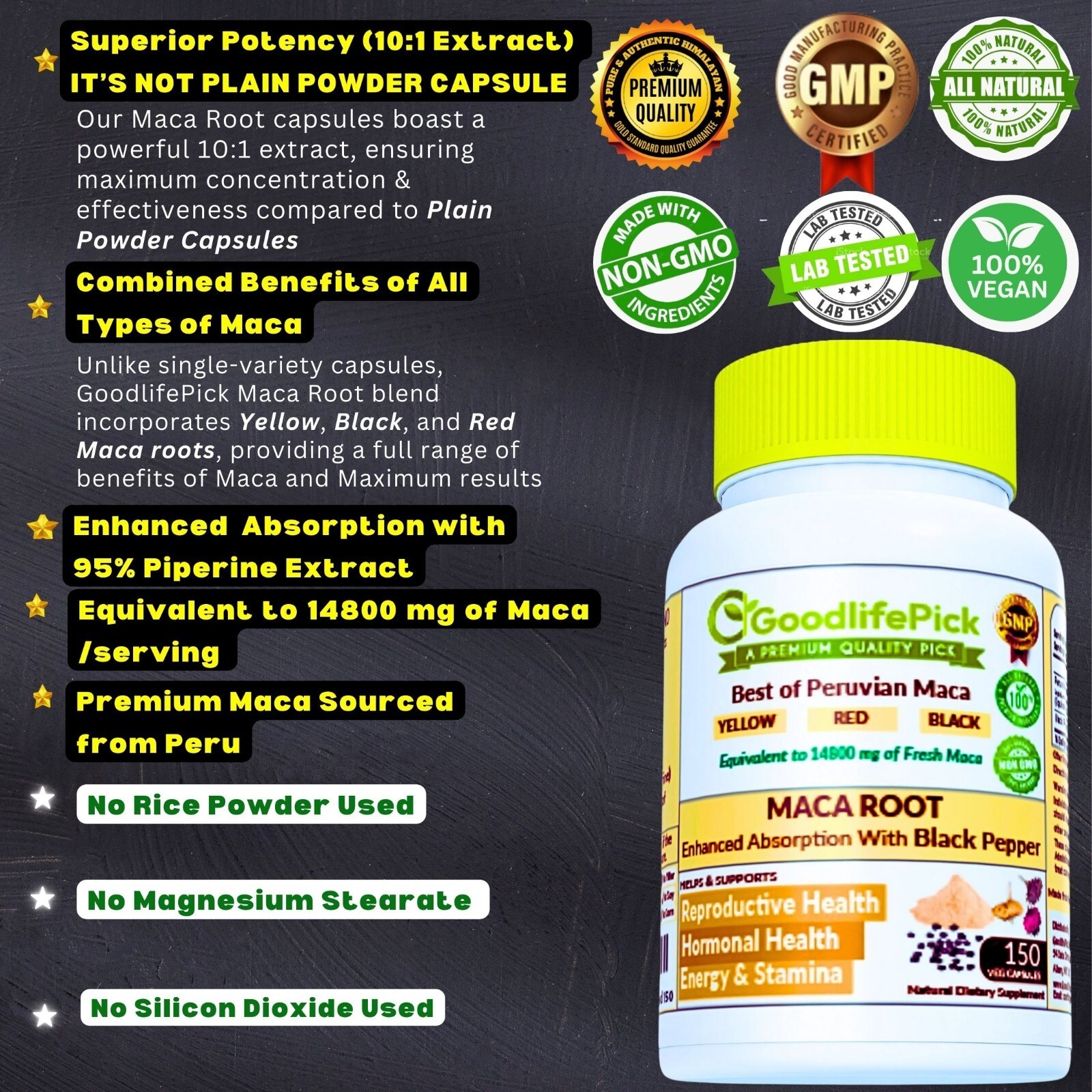 this incredible supplement. When you choose GoodlifePick Maca Root Capsules,