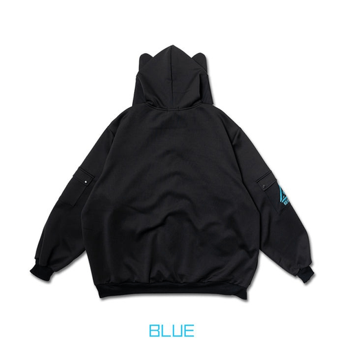 Cyberpunk Cat ears black blue punk emo zip up hoodie - unisex