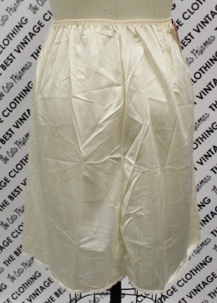 Vintage ivory Antron III nylon half slip from Mary Jane with small scalloped lace around the hem and about a 10" slit on the one side with Floral Heart shaped lace.