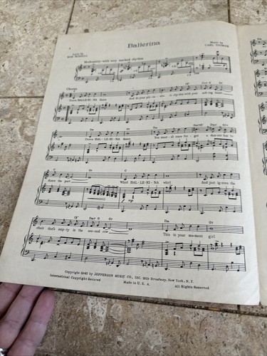 Original vintage sheet music for Dance Ballerina Dance with lyrics by Bob Russell and music by Carl Sigman. Recorded by Jimmy Dorsey and published by Jefferson Music Co., New York in 1947.