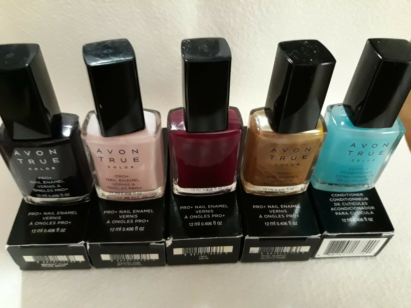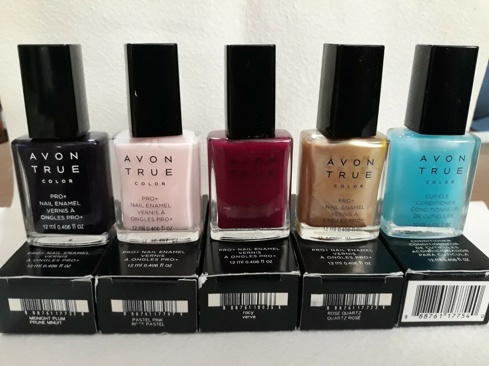 AVON TRUE COLOR NAIL 5pc LOT (4 - PRO+ NAIL ENAMEL 1 - Cuticle Conditioner) NEW!!!