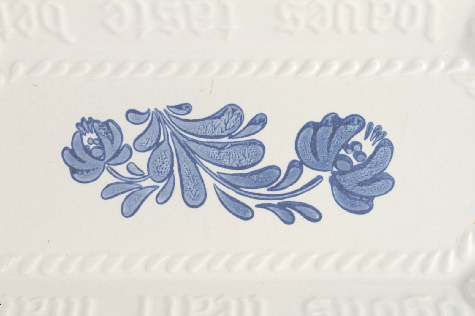 This Pfaltzgraff Yorktowne bread plate is a perfect addition to any dinnerware collection. The oblong plate measures 12 inches in length and 6.5 inches in width, with a semi-matte blue finish and an impressed backstamp. The plate is made of stoneware and is dishwasher safe for easy cleaning.