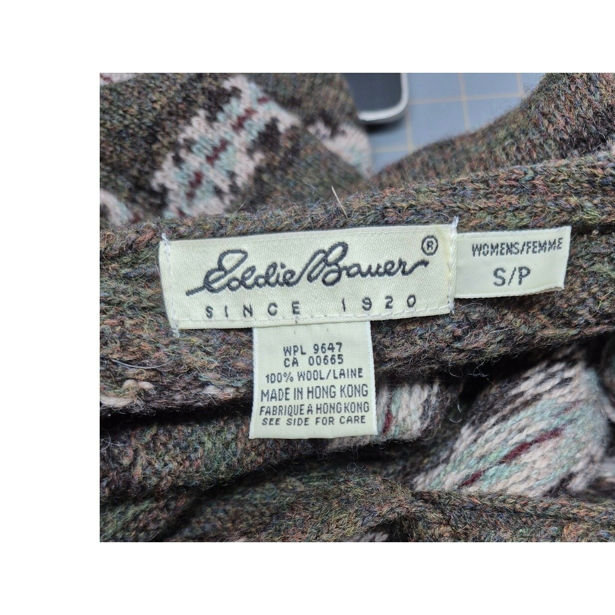 Vtg 80s 90s Eddie Bauer 100% Wool Sweater Vest Green/ Pink Fair Isle Women S/P