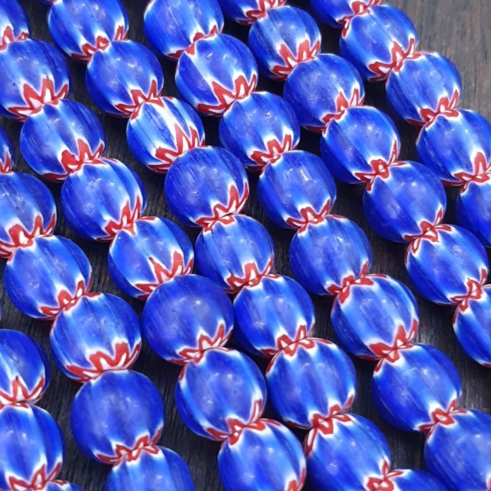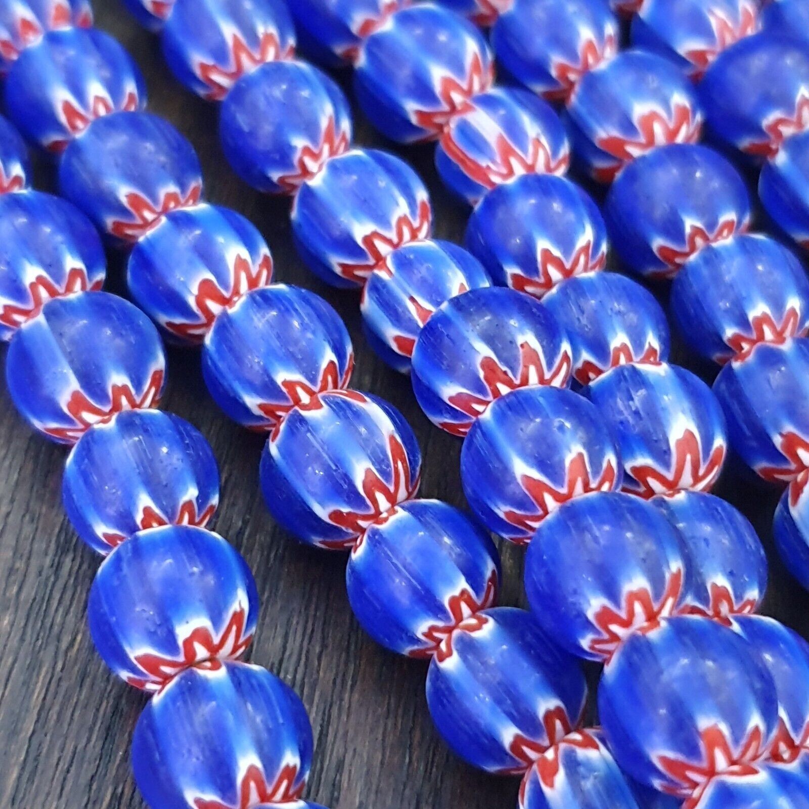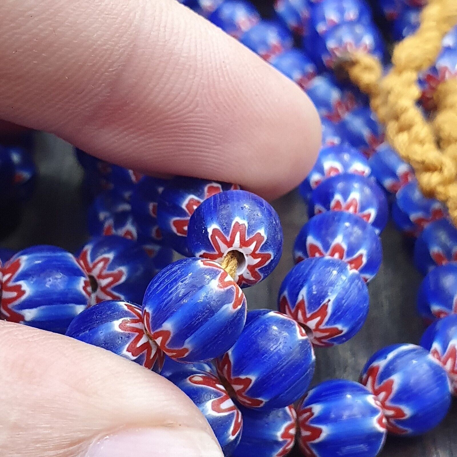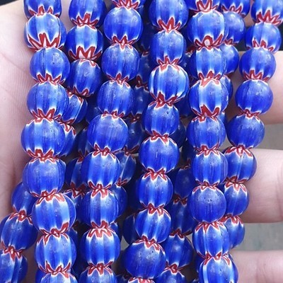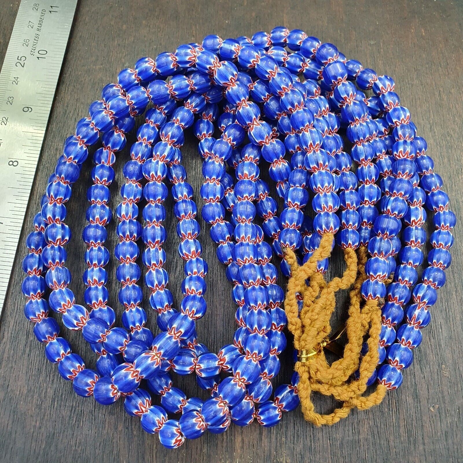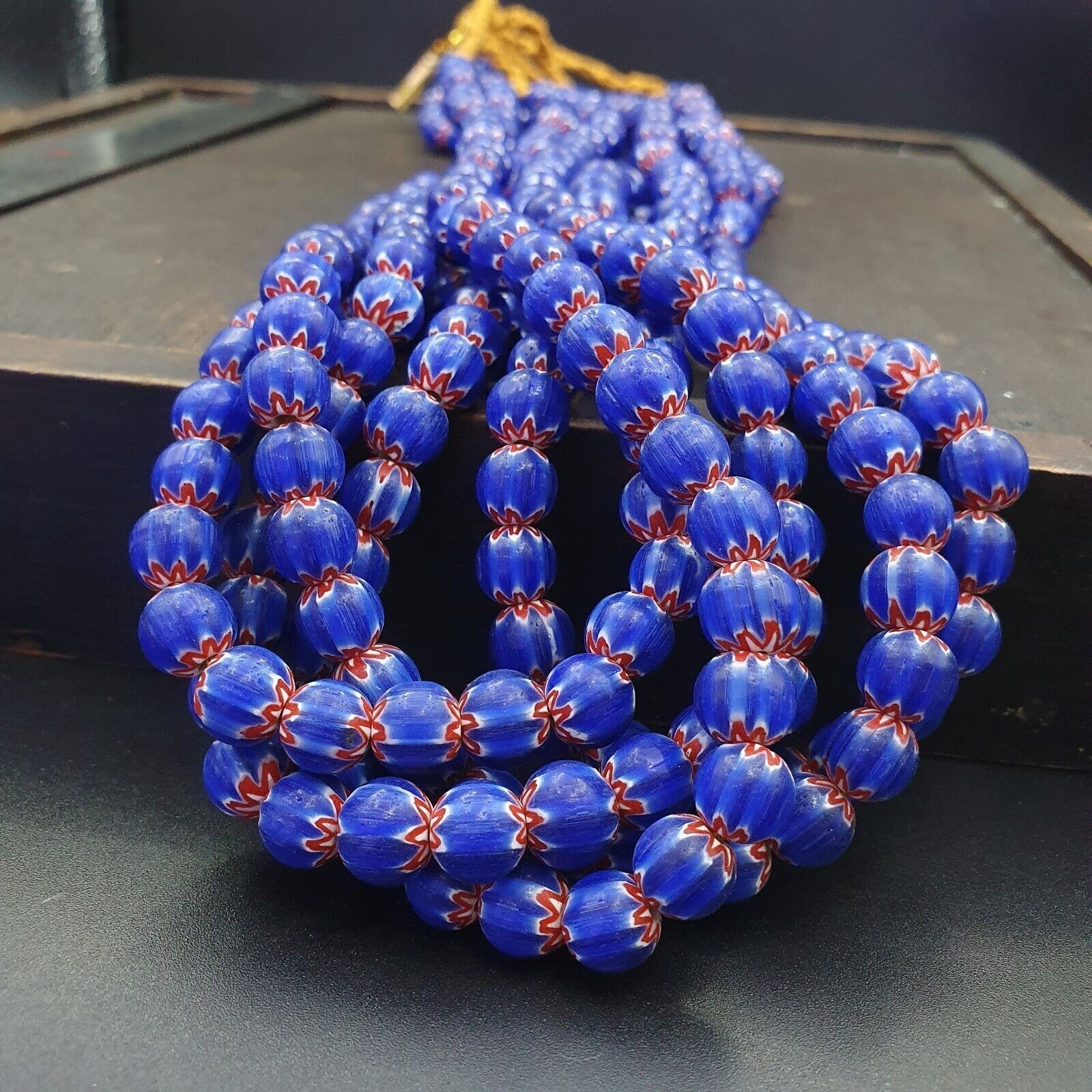 Vintage Old Blue Chevron Trade beads Old African9-9.5mm Glass Beads Necklace