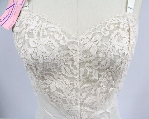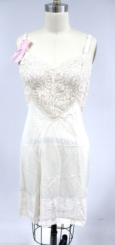 VTG Baronet Satique Nude Nylon Tricot Full Slip 50S 32 NOS NWT Sheer Lace Bra