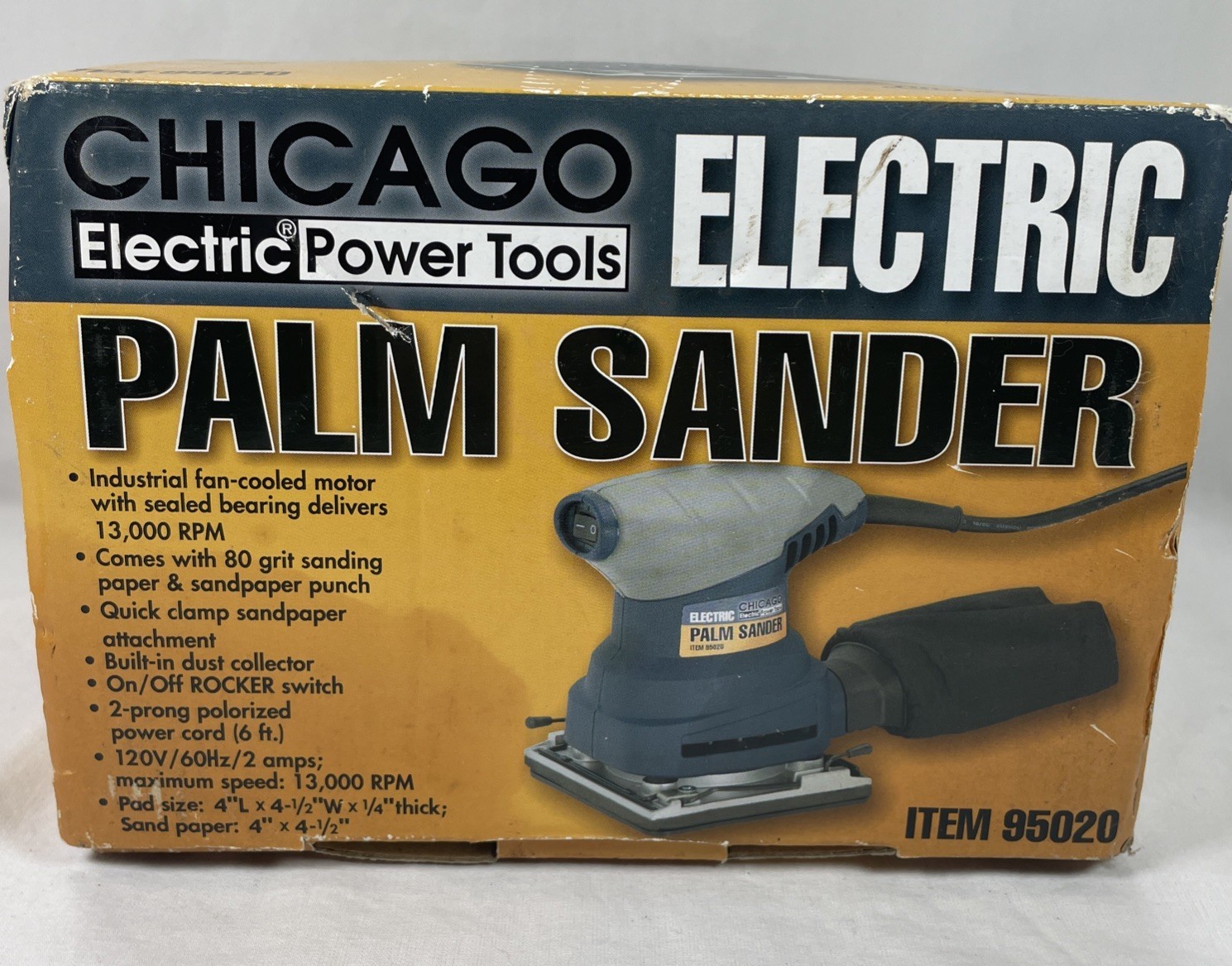 The Chicago Electric Palm Sander is a corded electric power tool that operates on 120 volts. This palm sander is designed for easy and efficient sanding tasks, making it a versatile tool for DIY projects and professional woodworking tasks. With the brand reputation of Chicago Electric Power Tools, you can trust in the quality and durability of this palm sander for your sanding needs.