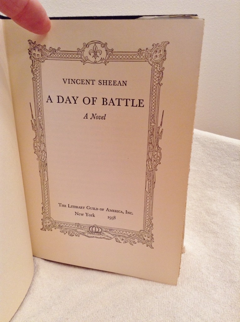 A Day of Battle Vincent Sheean 1938 Literary Guild of America Hardcover