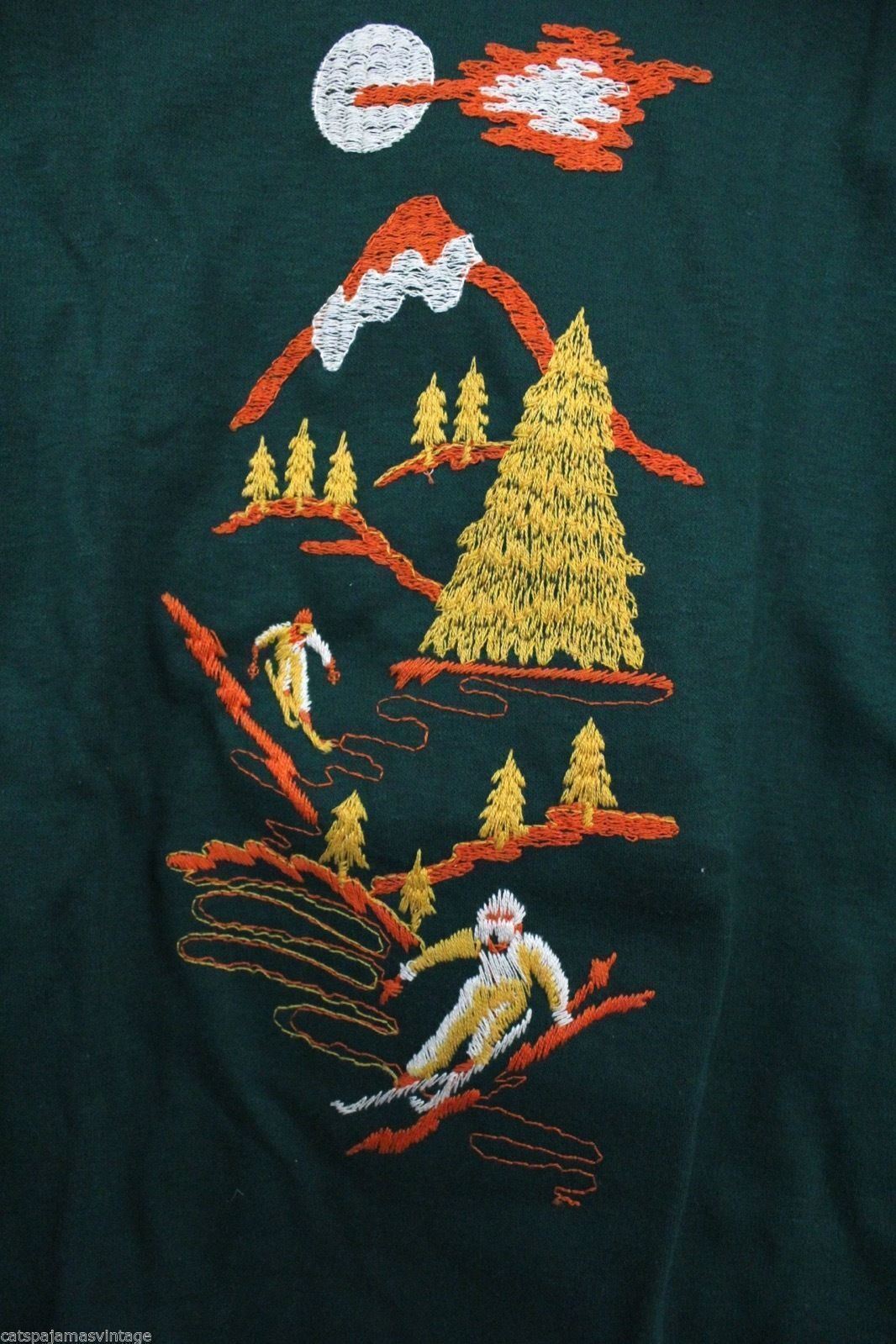 Authentic VTG 70s Career Club T-Shirt M Green Downhill Ski Motif NWOT USA