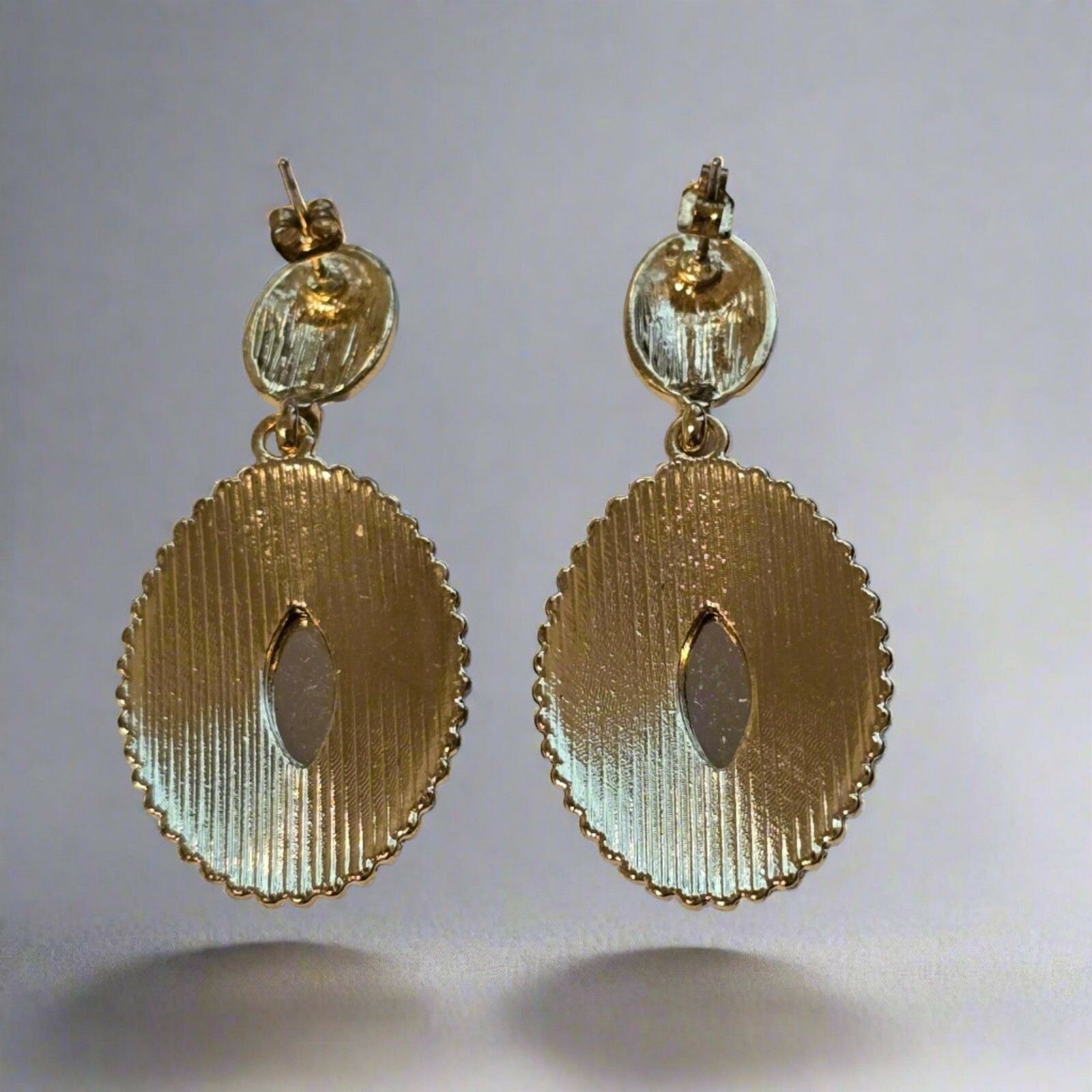 Vintage-Inspired Blue & Gold Dangle Earrings – Statement Oval Drop Jewelry