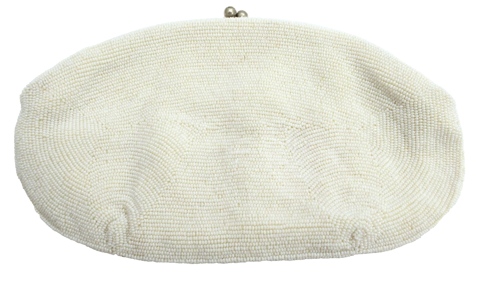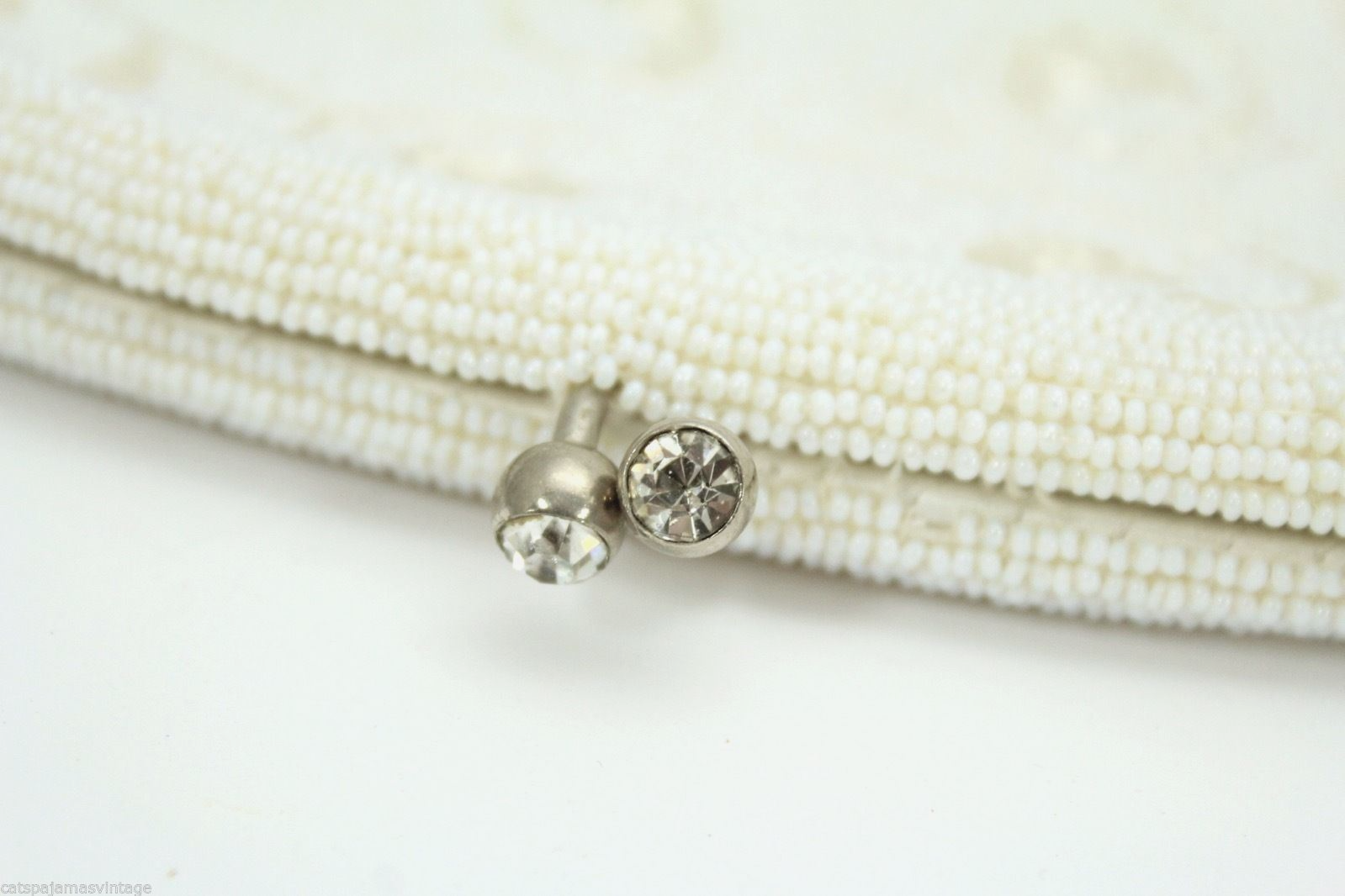 Vintage Retro Clutch Evening Purse White Seed Bead By Debbie 1950S Wedding
