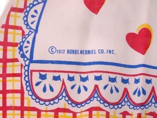 Fabric: 100% cotton · Printed Raggedy Ann design · Red piping · Tie neckline · Copyright Bobbs Merrill apron