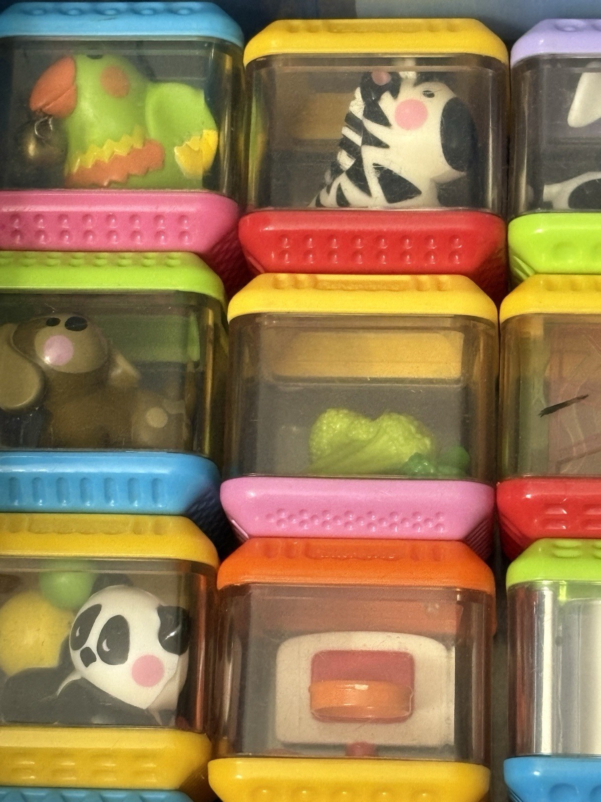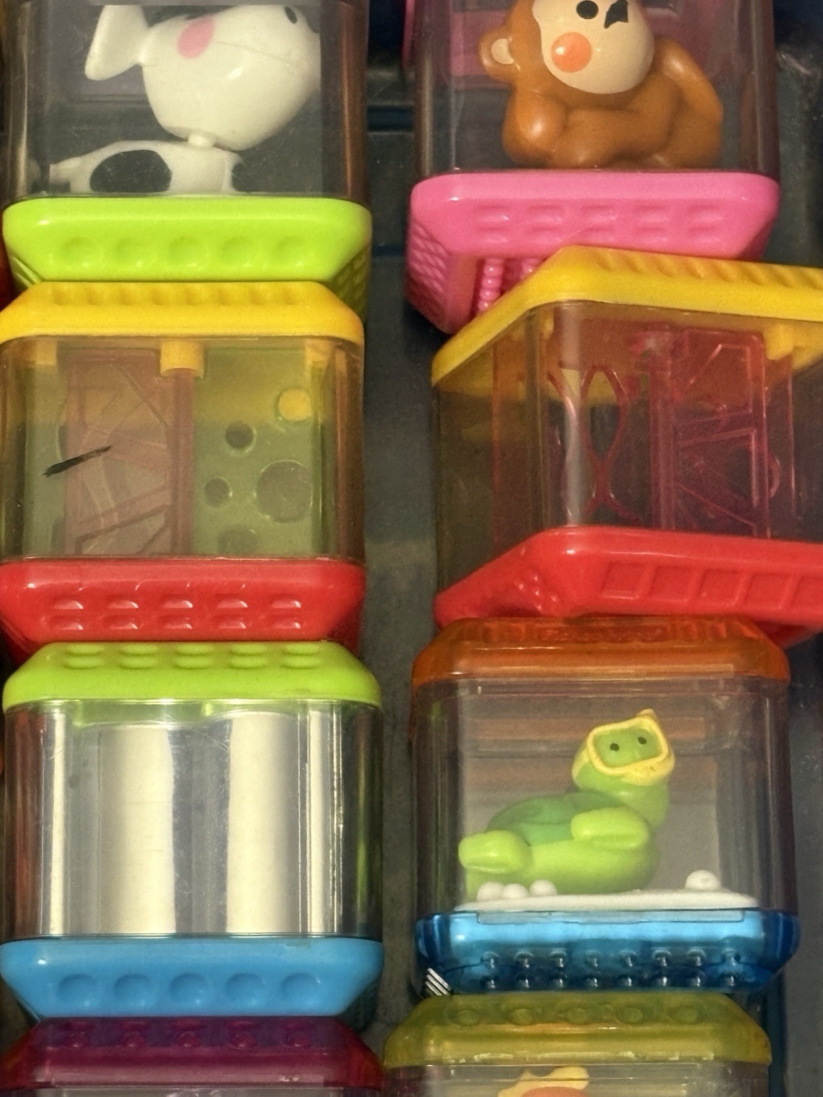 Fisher Price 30 Peek A Boo Blocks Cubes 2" Plastic Toys Animal Shapes Color Used