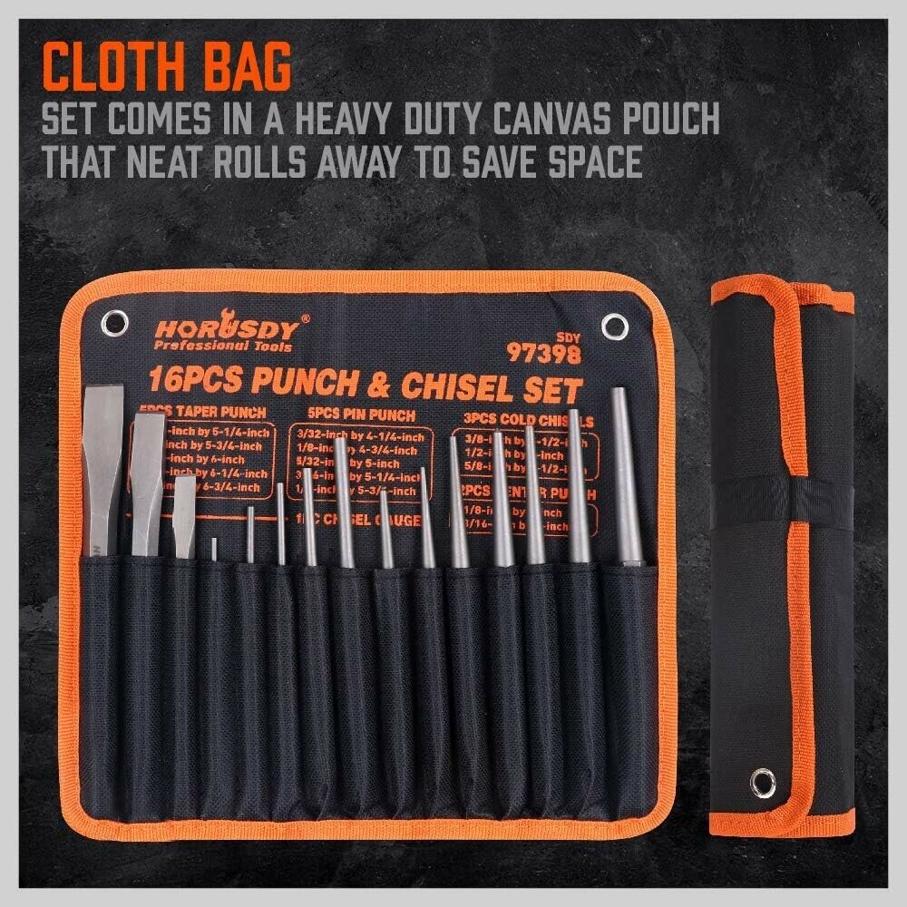 High-Quality 16-Piece Punch and Chisel Set - Perfect for Professionals & DIYers