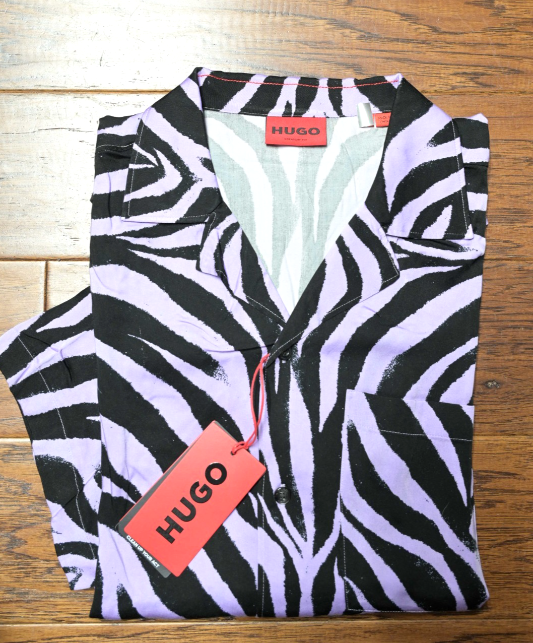 NWT Hugo -Chef Herren Ellino kurzarmelig gerade Fit Hugo Responsible Beach Shirt