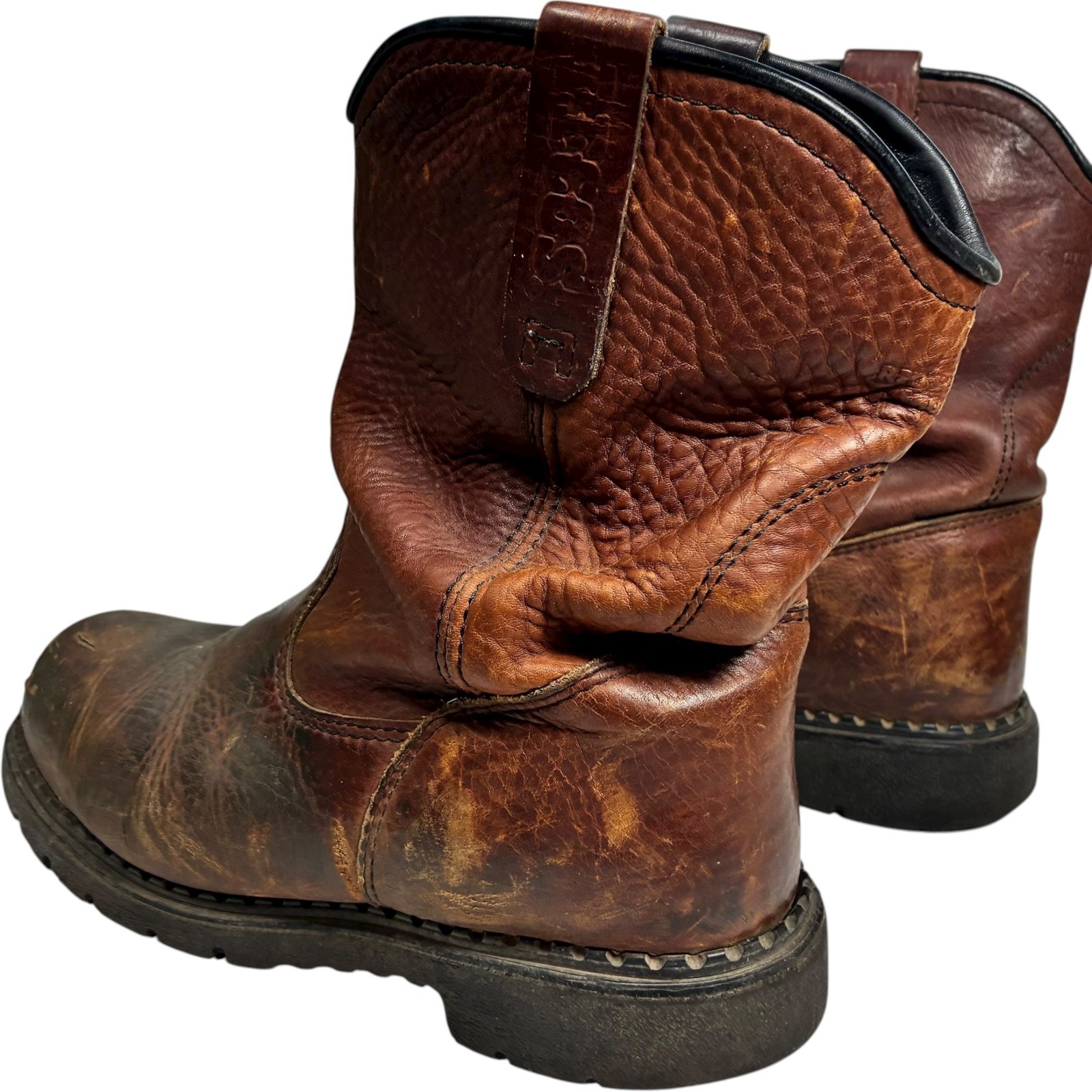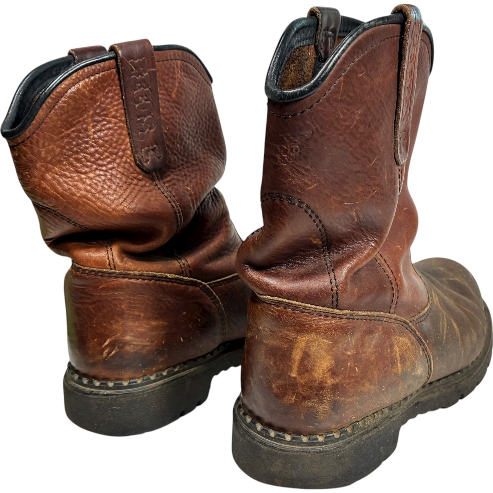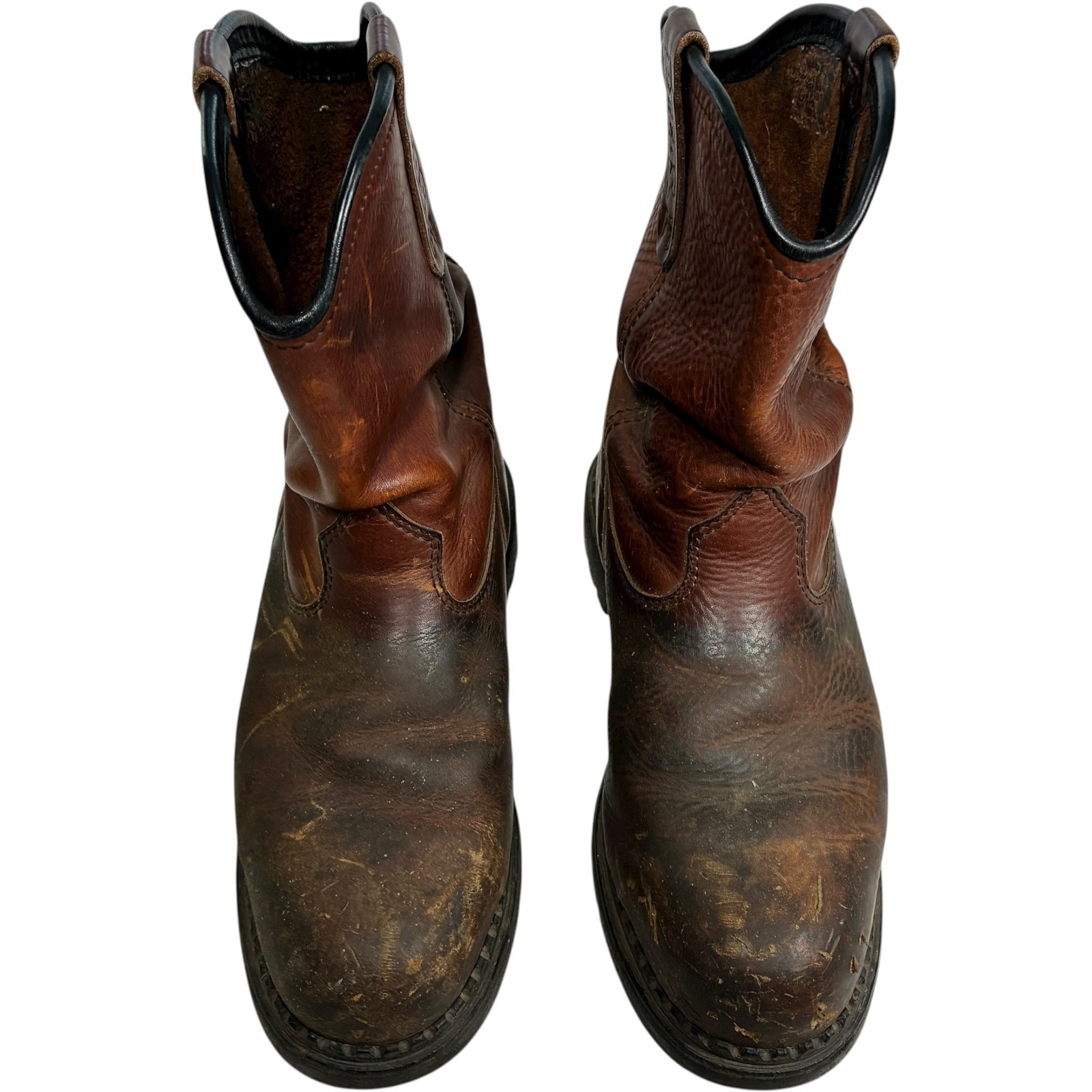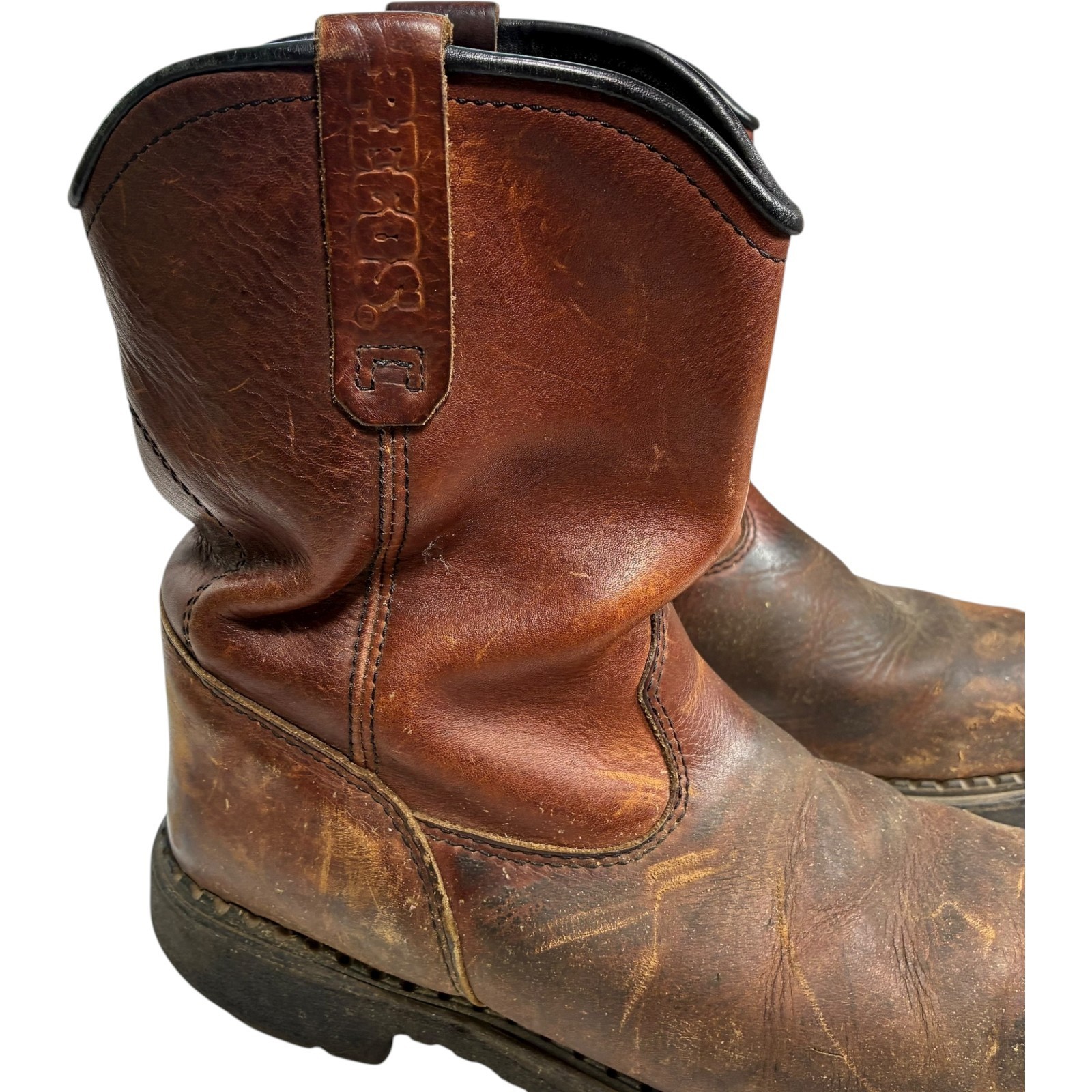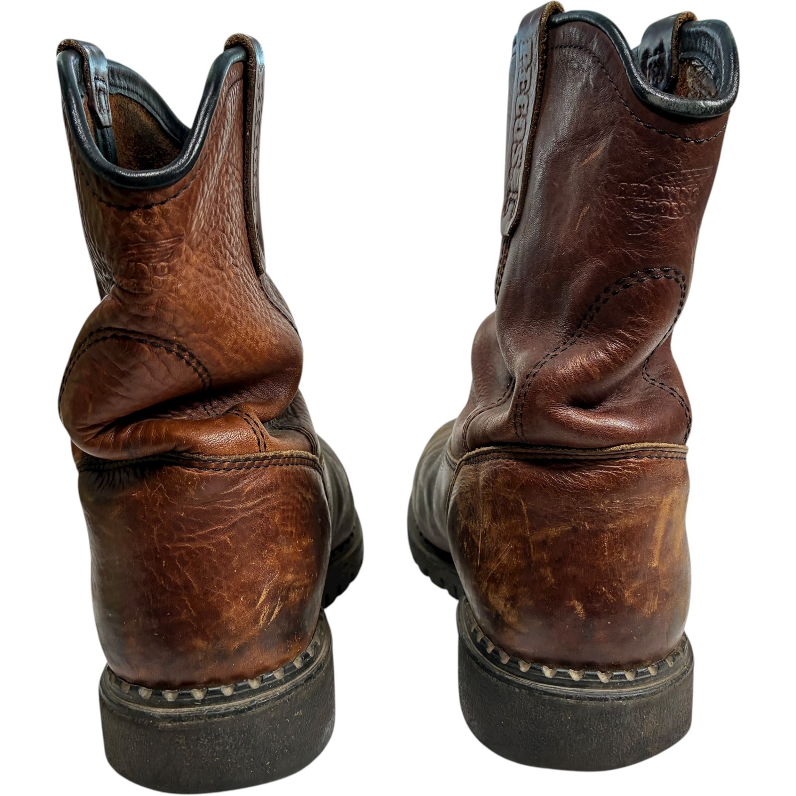 Red Wing Pecos men's brown leather steel toe work boots size 11 - note heel drag and scratches on toes