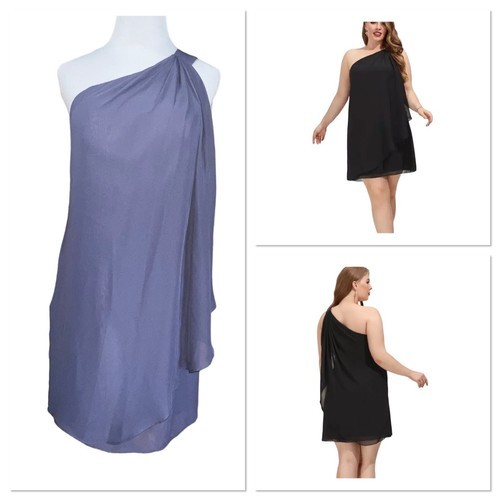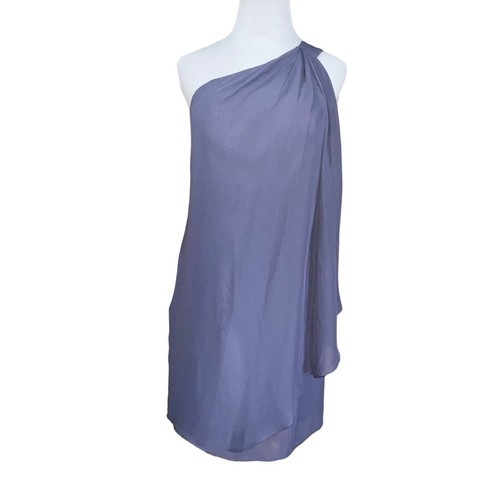 JJ's House Dress Women Size 6 Purple Stormy One Shoulder Chiffon Sheath Dress