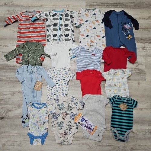 Clothes Lot Baby Boy 0-3 M 17pc Soft Sleepers Bodysuits Outfit Set Gently Used