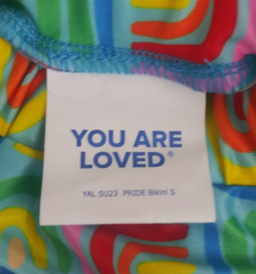 This is for a NWT You Are Loved Pride Bikini Dog Size Small.