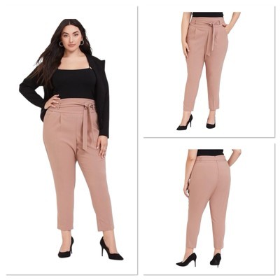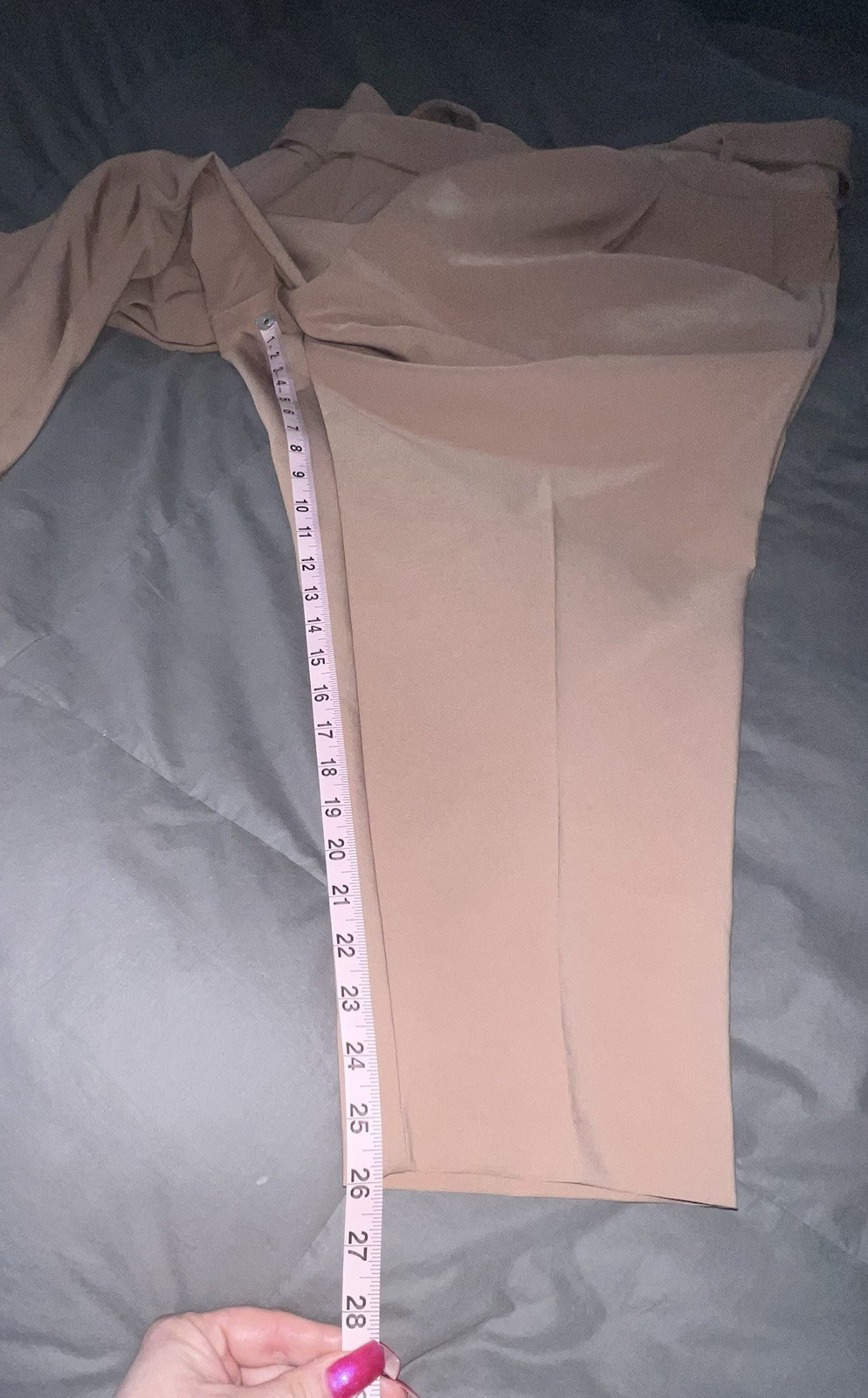 Elevate your wardrobe with these stylish and versatile Torrid high waisted pants. Perfect for any occasion, these chino-style pants feature a tie-front closure and a flattering high rise. The solid tan color makes them easy to pair with any top, while the tapered leg and 26-inch inseam create a sleek and modern silhouette.