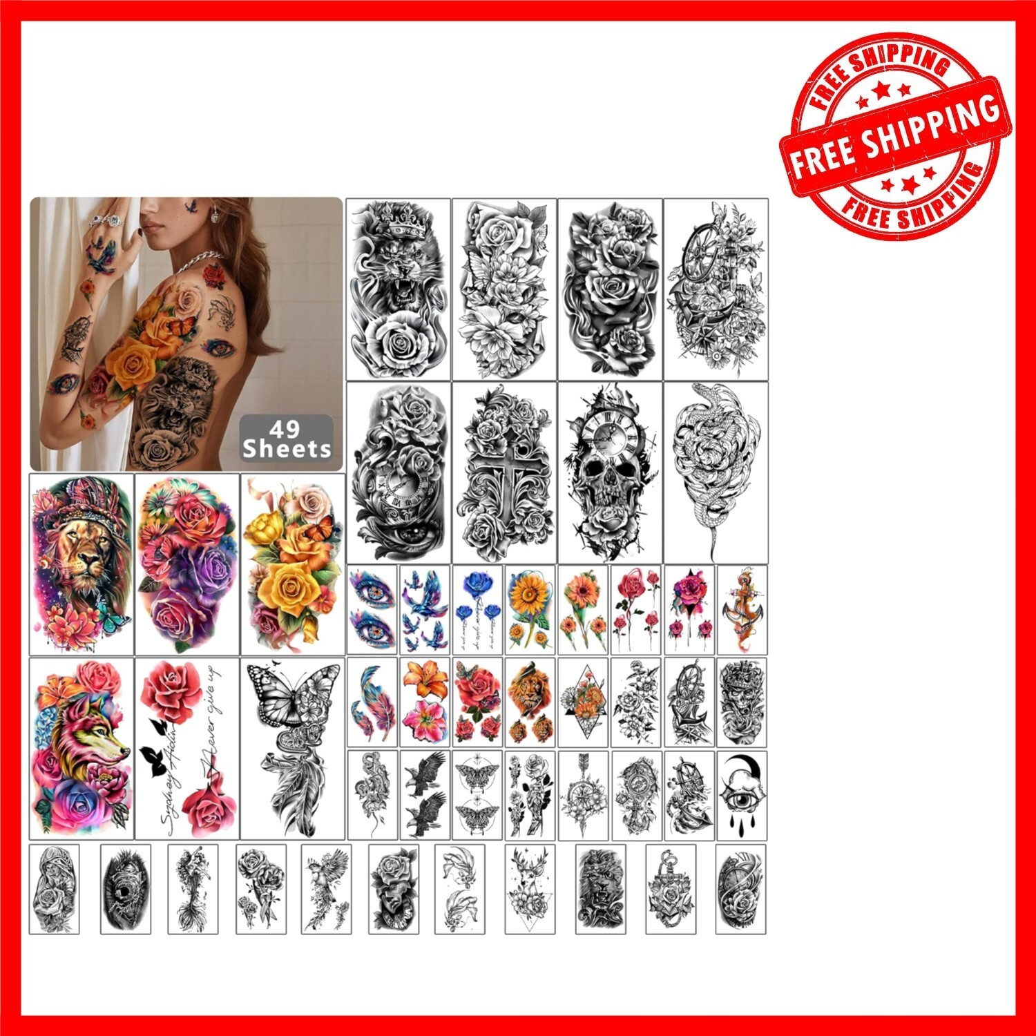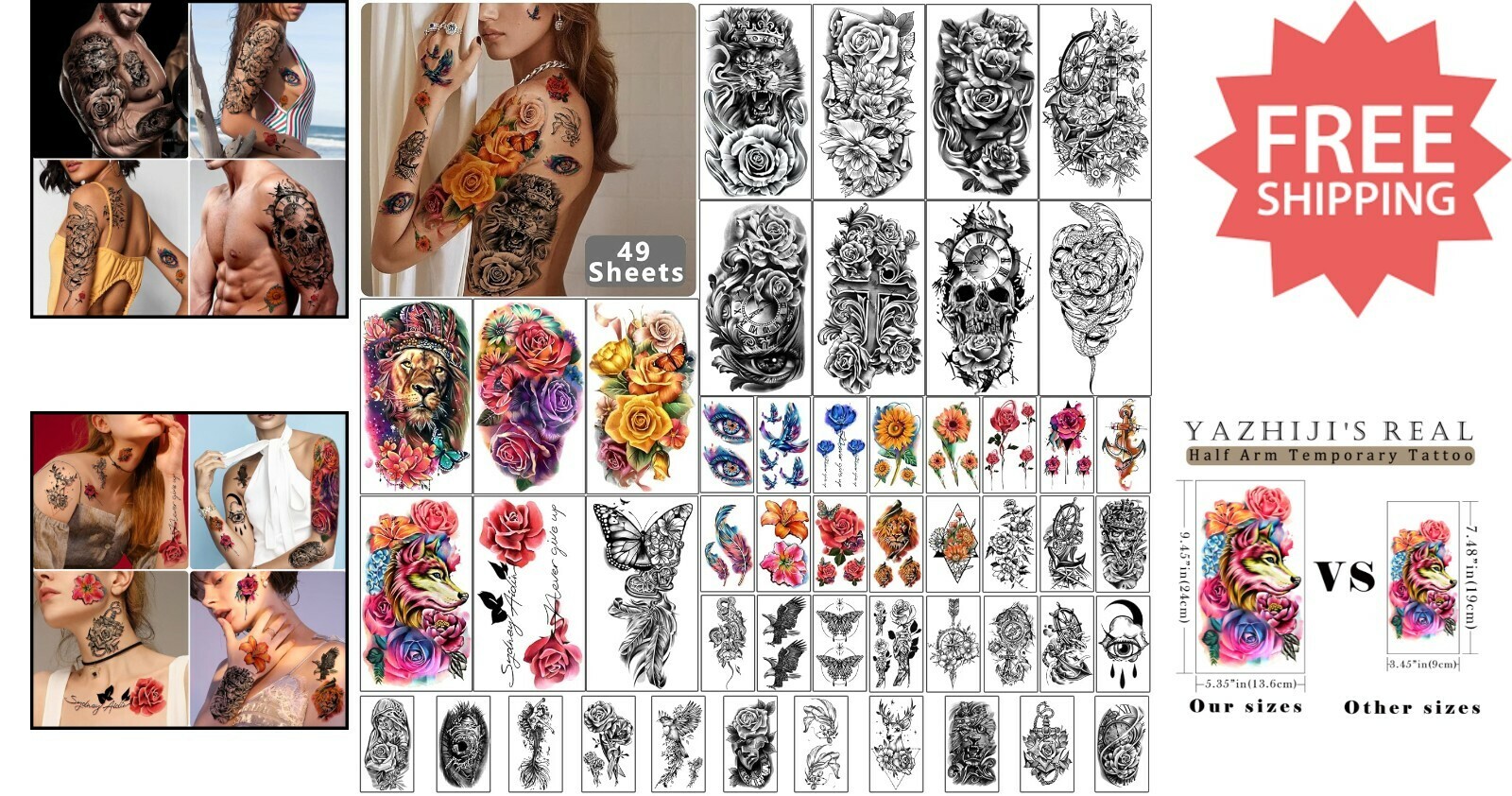 49 Sheets Realistic Waterproof Temporary Tattoos