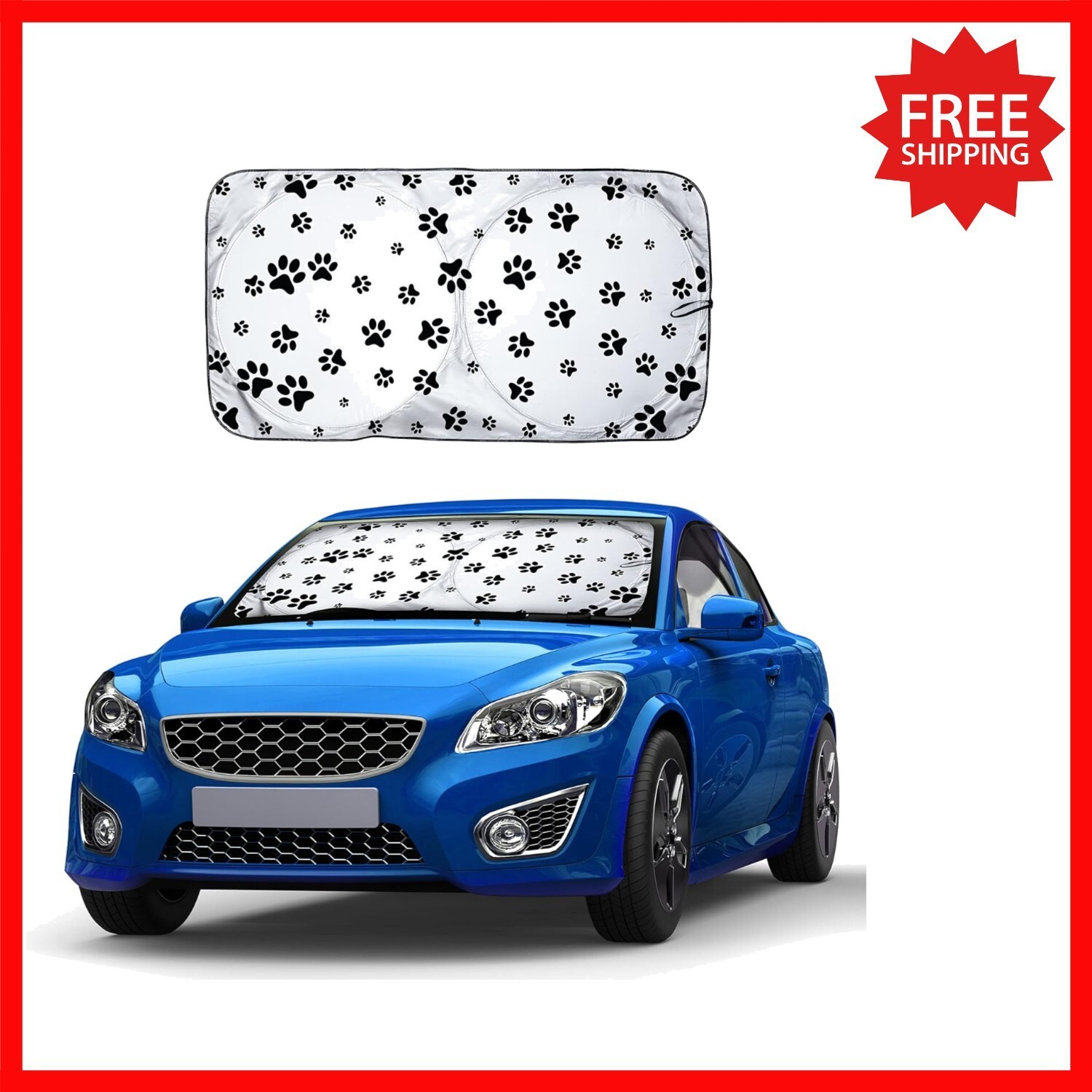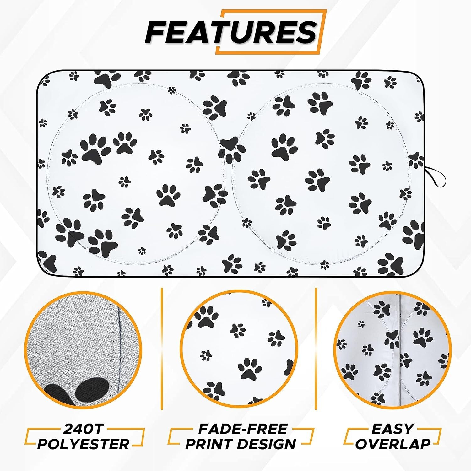 Custom Fit Windshield Sun Shade with Puppy Footprints - 64'x32' Easily Installed