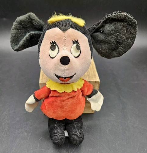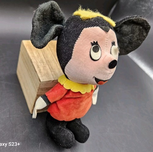 3: corduroy plush Minnie Mouse made in Japan for Walt Disney Productions sawdust stuffing has small tear behind one ear please see all photos. 5.5 in