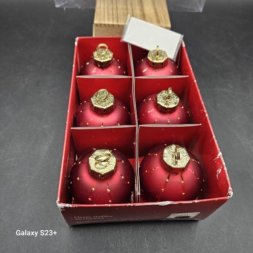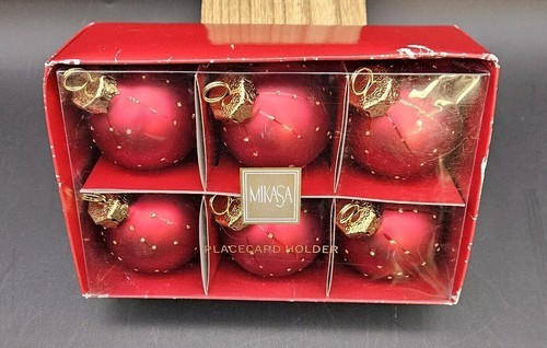 Mikasa Place Card Holders Gold & Red Ornament Christmas Balls NIB