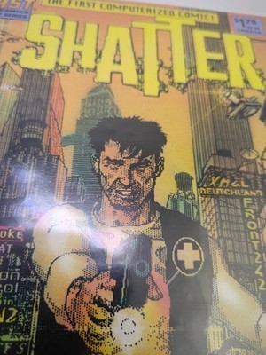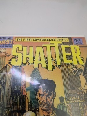 Shatter Special No. 1 is a pioneering comic book recognized as the first computerized comic, showcasing innovative digital artistry from First Comics Deluxe Series.