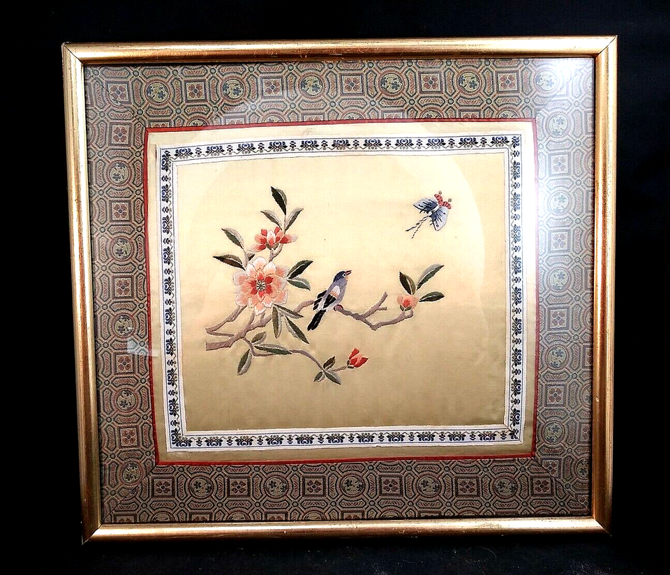 Asian Silk Embroidery Pink Lotus, Bird & and similar items