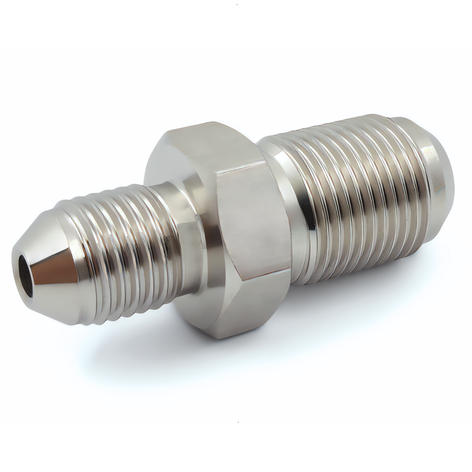 The AN thread is a particular type of fitting used to connect flexible hoses and rigid metal tubing that carry fluid. It became popular for usage within Professional racing for the ability to easily customize new lines. From there it's usage spread to the aftermarket automotive performance field for its ease in adaptability, upgradability and durability. This fitting is made of solid stainless steel. It is perfect for brake and clutch adapters. It is suitable for air and all fluids. Ideal for high pressure fluids and plumbing needs.