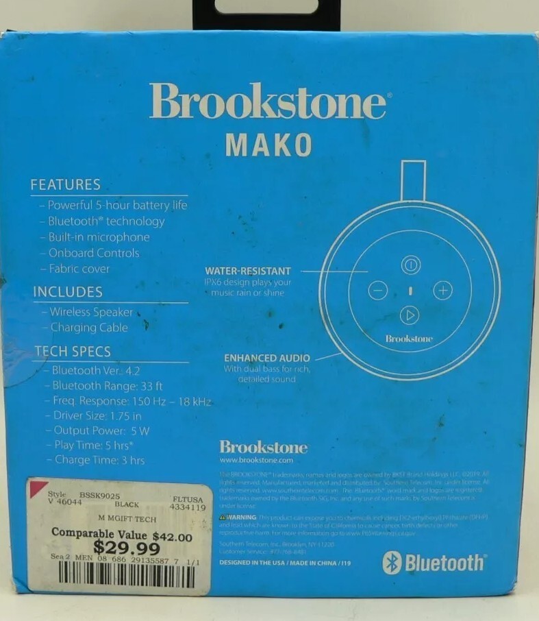 Brookstone MAKO II Portable Wireless Speaker with Bluetooth Black - New Open Box