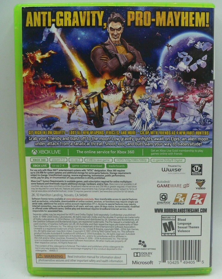 This lot of four games for Microsoft Xbox 360 includes Borderlands Pre-Sequel, Borderlands 2, GTA 4, and Madden 11. All of these games are compatible with the Microsoft Xbox 360 platform and are perfect for gamers who love action-packed gameplay and exciting storylines. The games are specifically designed for the Microsoft Xbox 360 and are made by Activision, a well-known brand in the gaming industry.