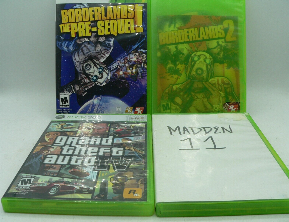 Xbox 360 Lot of 4 Games: Borderlands Pre-Sequel, Borderlands 2, GTA 4, Madden 11